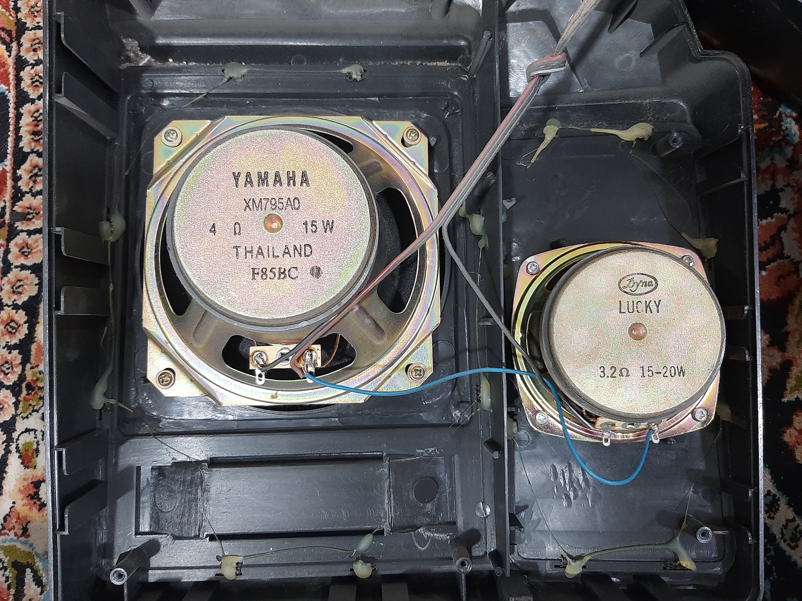 از باند های دستگاه عکس گرفتم به احتمال خیلی زیاد بلندگوهای بزرگ تعویض شده از برند یاماها هست. ولی میدرنجها فابریک هست برند لاکی.