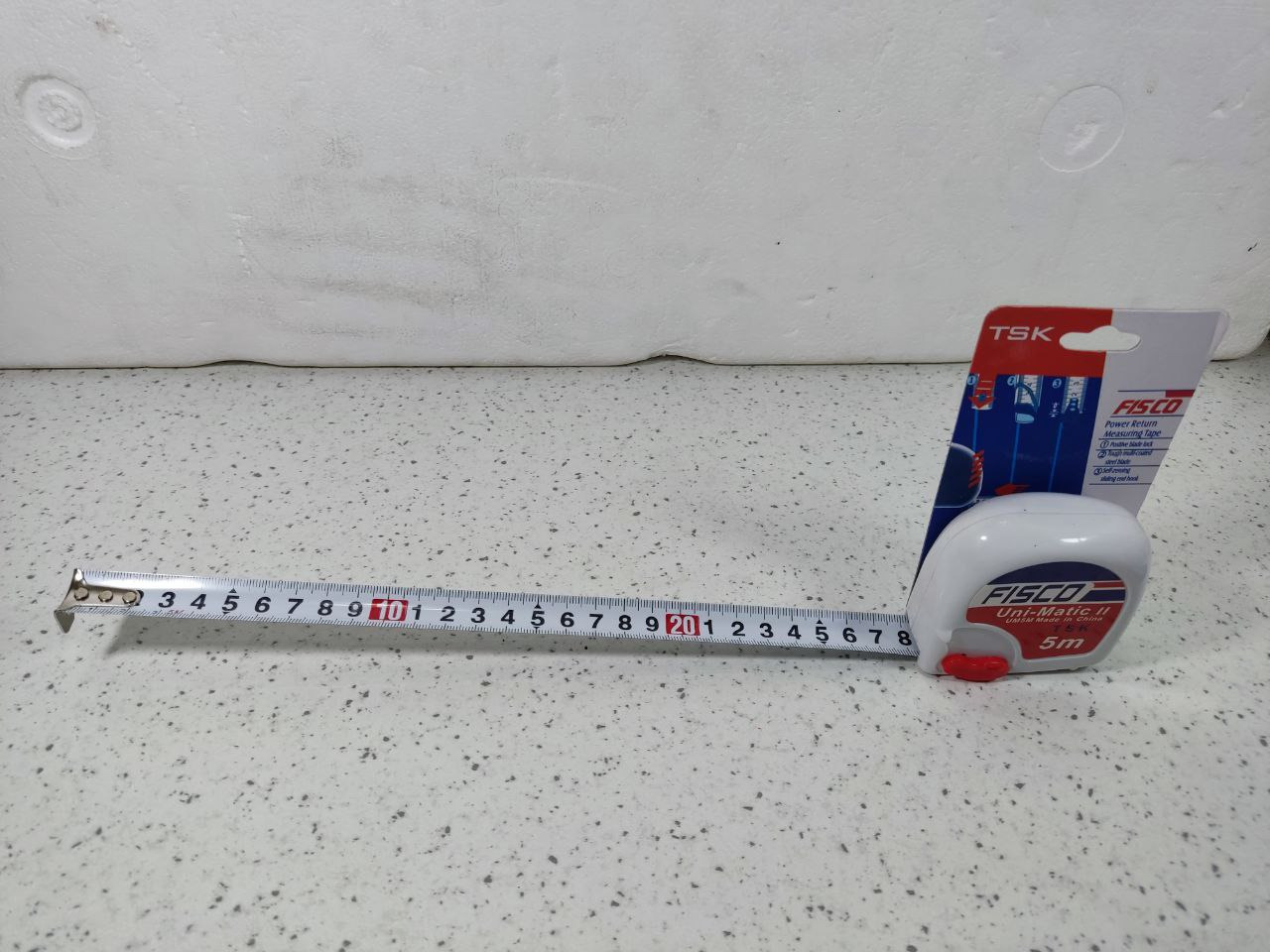 اعداد متر پنج متری فیسکو، در یک طرف و برحسب سانتیمتر درج شده است