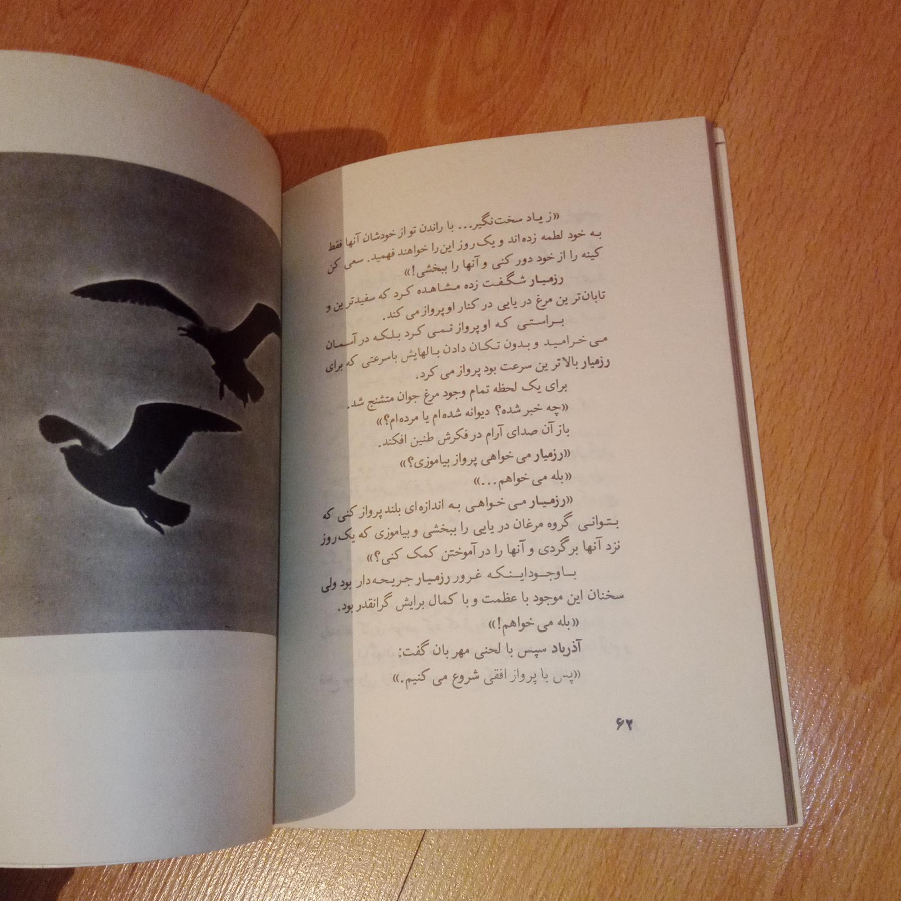 بیشتر مرغان دریایی نمیخواستند بیش از آنچه درباه پرواز میدانستند، بیاموزند. برای آنها فقط پرواز به طرف ساحل، برای دست یافتن به غذا مطرح بود، ولی «آذرباد» بیش از هر چیز در زندگی از آموختن پرواز لذت میبرد.