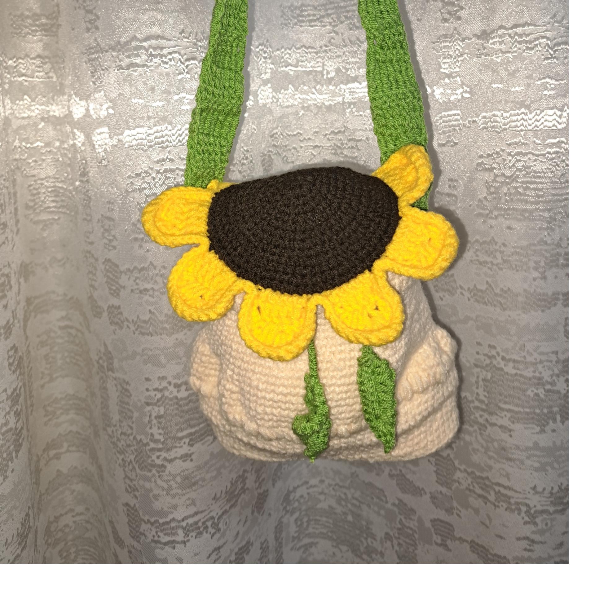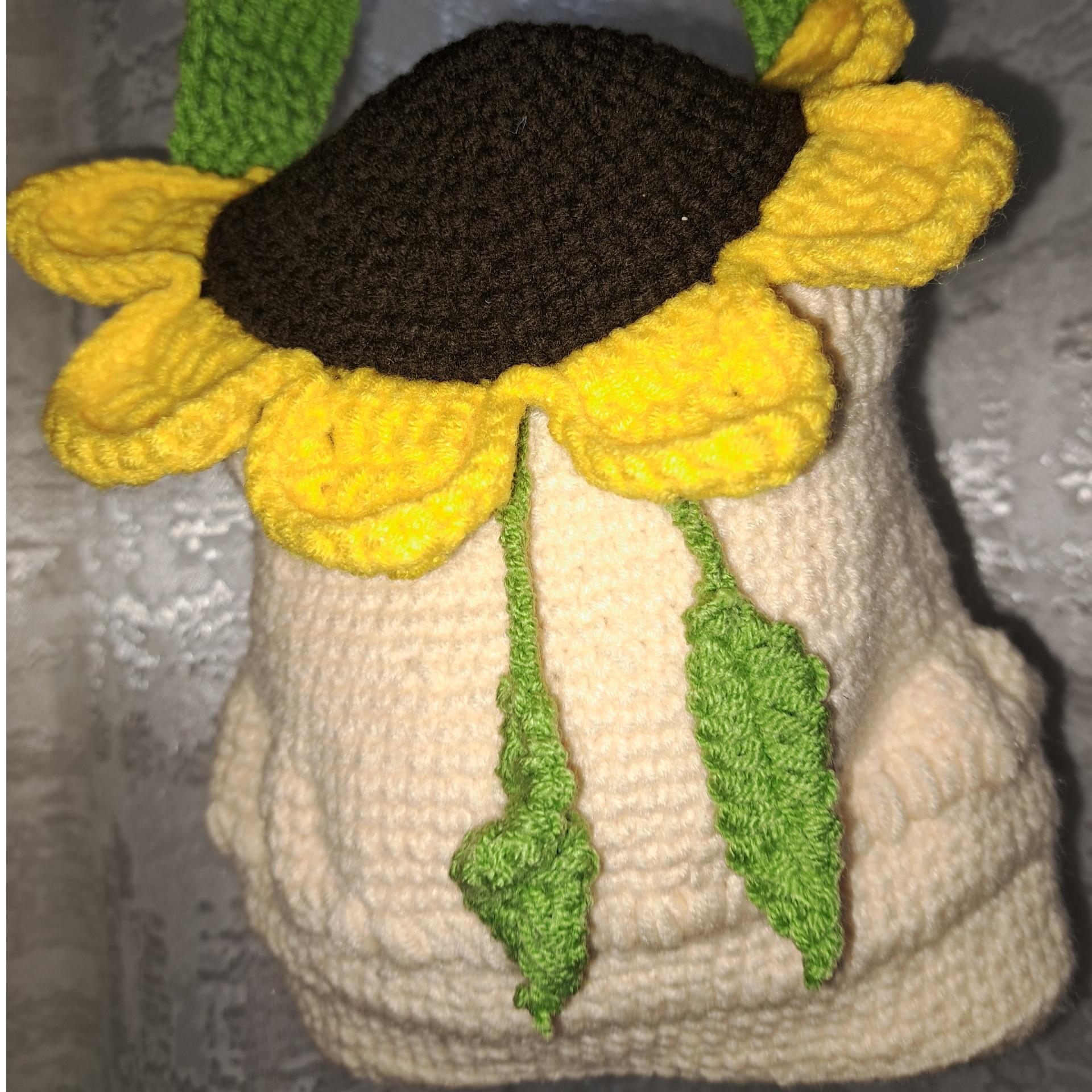 کیف دستی بافتنی زنانه دستباف طرح گل آفتابگردان