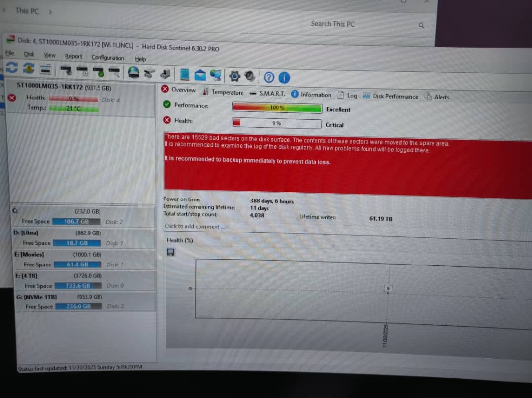 مطابق تصاویر و گزارش نرم افزار hard disk sentinel