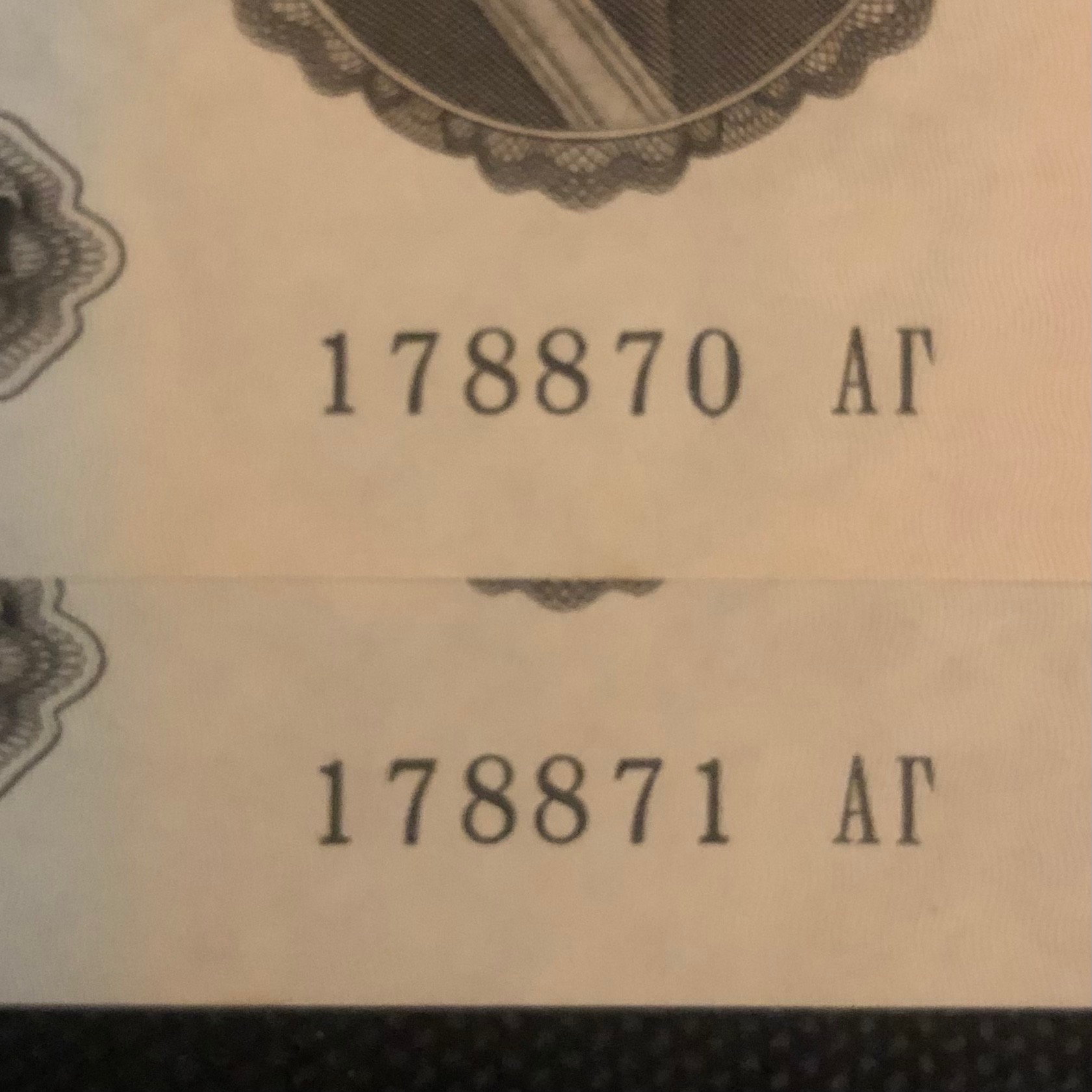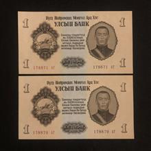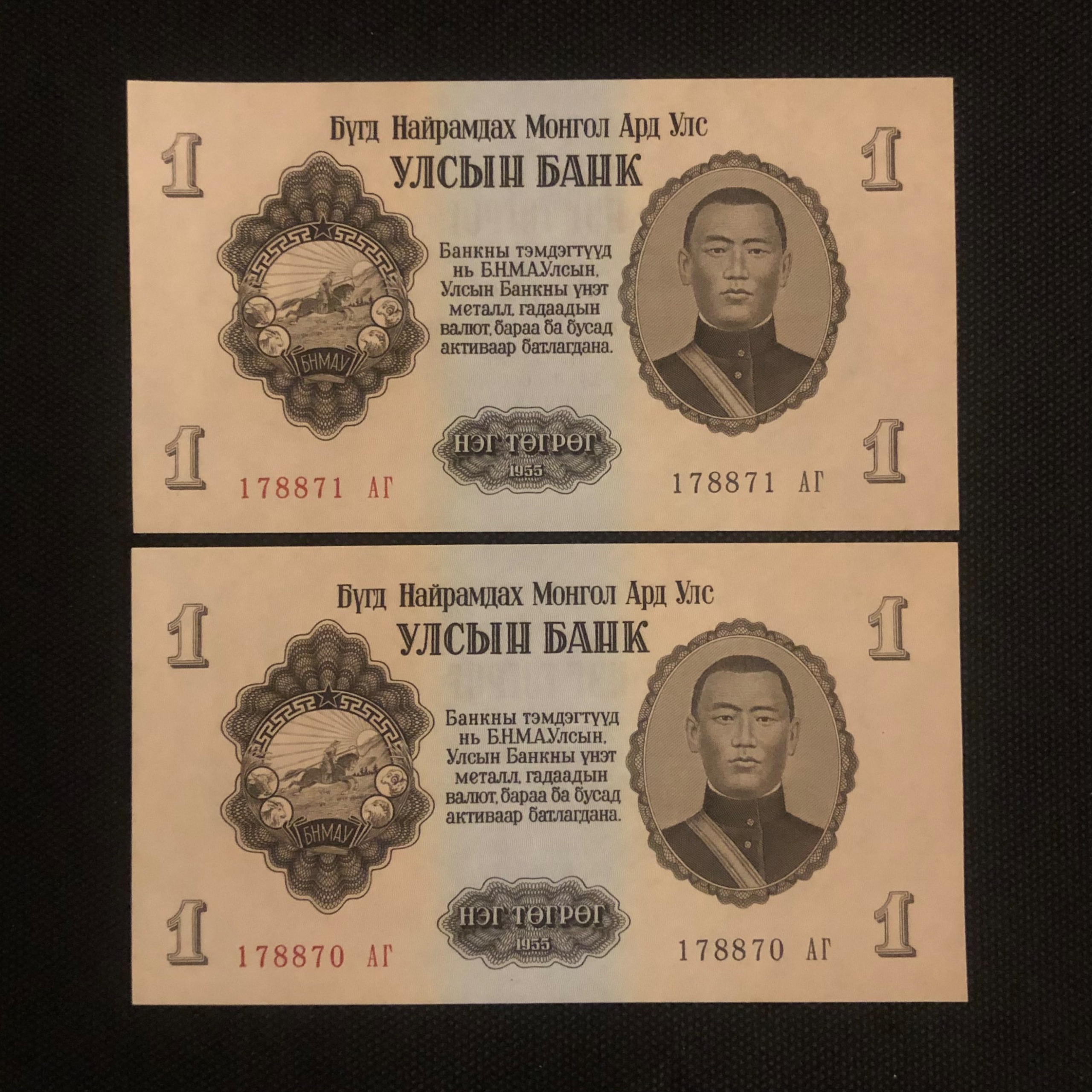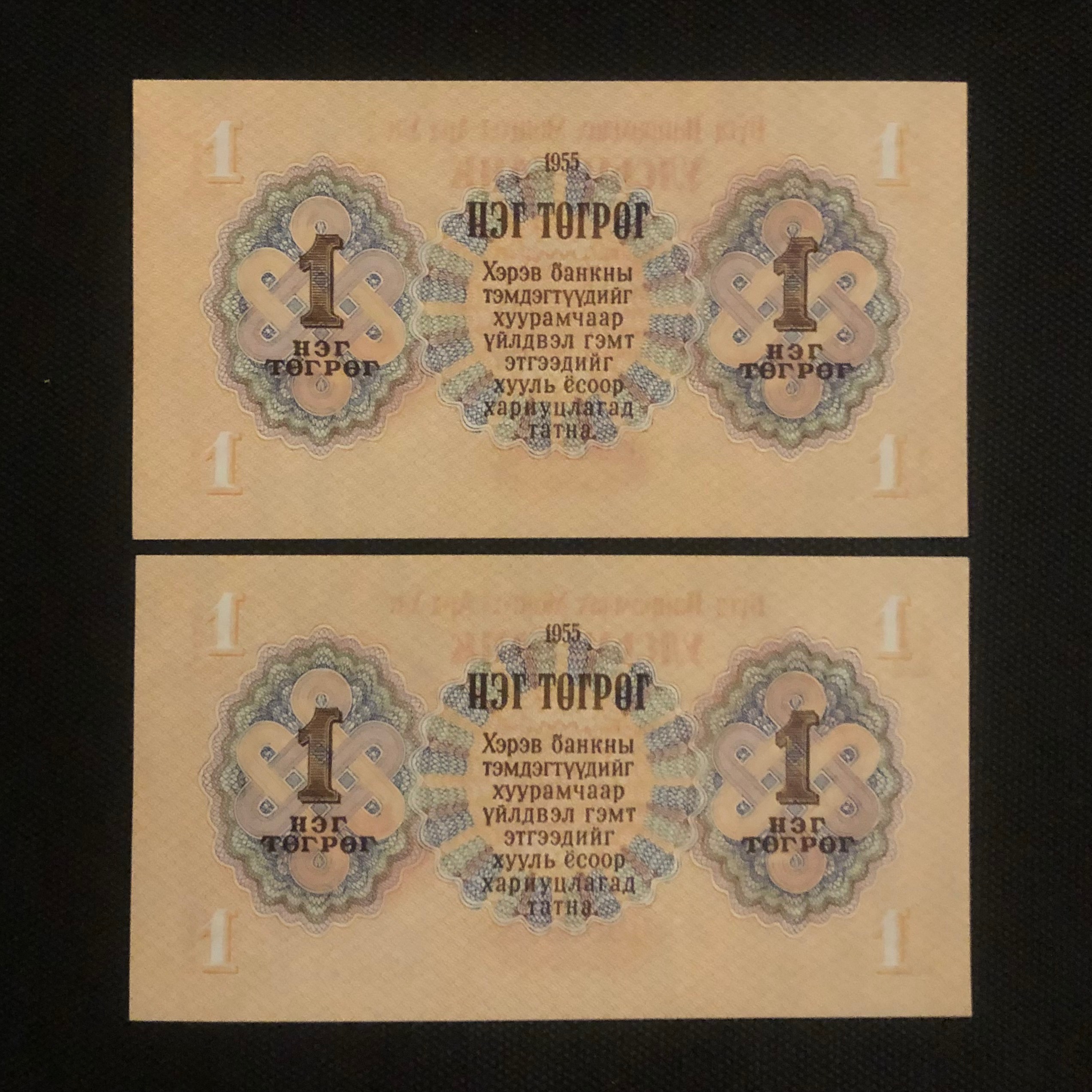 اسکناس جفت بانکی 1 توگروگ مغولستان1955شماره قرینه