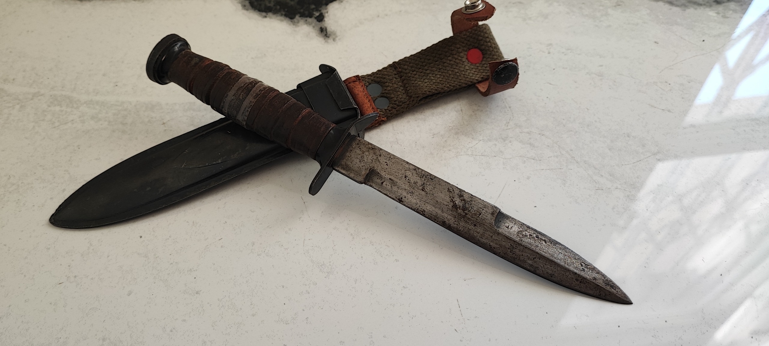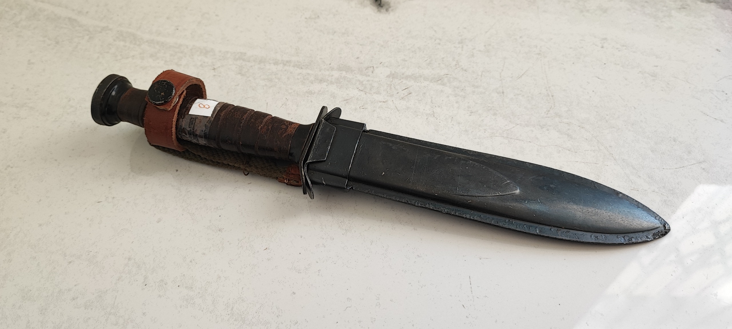 29 سانت طول، تیغ و غلاف فولادی فابریک، دسته چرم، بکر و بدون ایراد