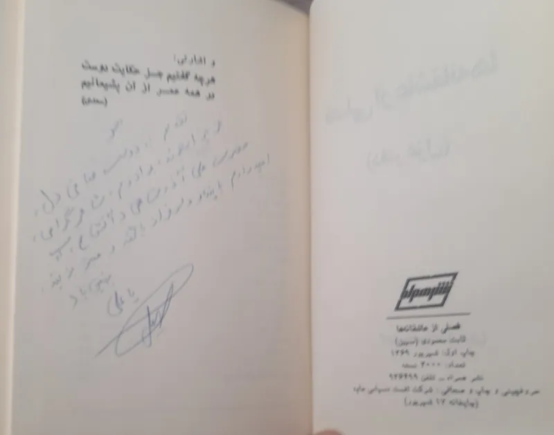 به شکلی که در تصاویر مشخص است دو صفحه اش نوشته و امضا دارد