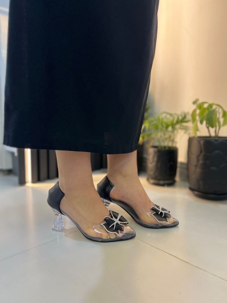 جنس طلق درجه یک تضمینی سایزبندی 37تا42 رنگ بندی مشکی سفید کرم ارتفاع پاشنه 6 سانت پاشنه شیشه ای نشکن پاشنه پیچ شده مطمعن