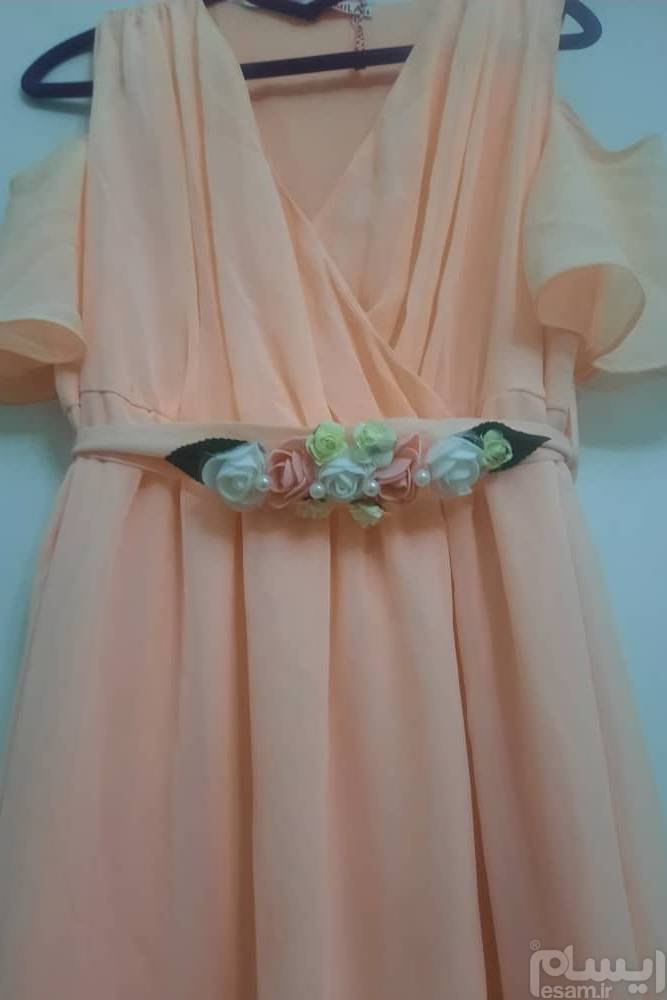 یکبار در مهمانی باردای پوشیده شده است و کاملن نو و سالم و تمیز ..مناسب حهت مجالس نهمانی و بارداری و عروسی فرمالیته سایز 42تا 44 دارای کمر بند گلدار قابل تنظیم