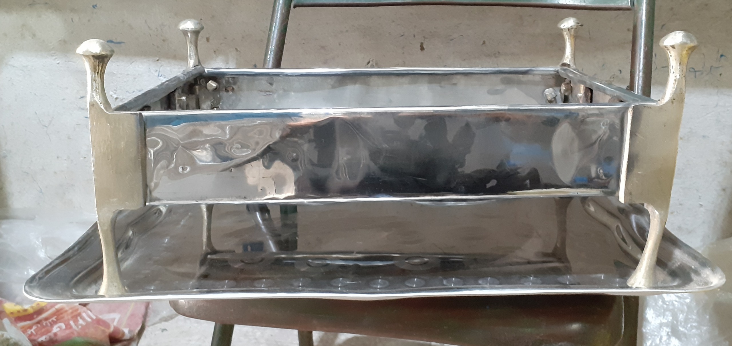 سینی استیل ابرویی قدیمی ضخیم و در حد نو بدون خط و خش آینه ای