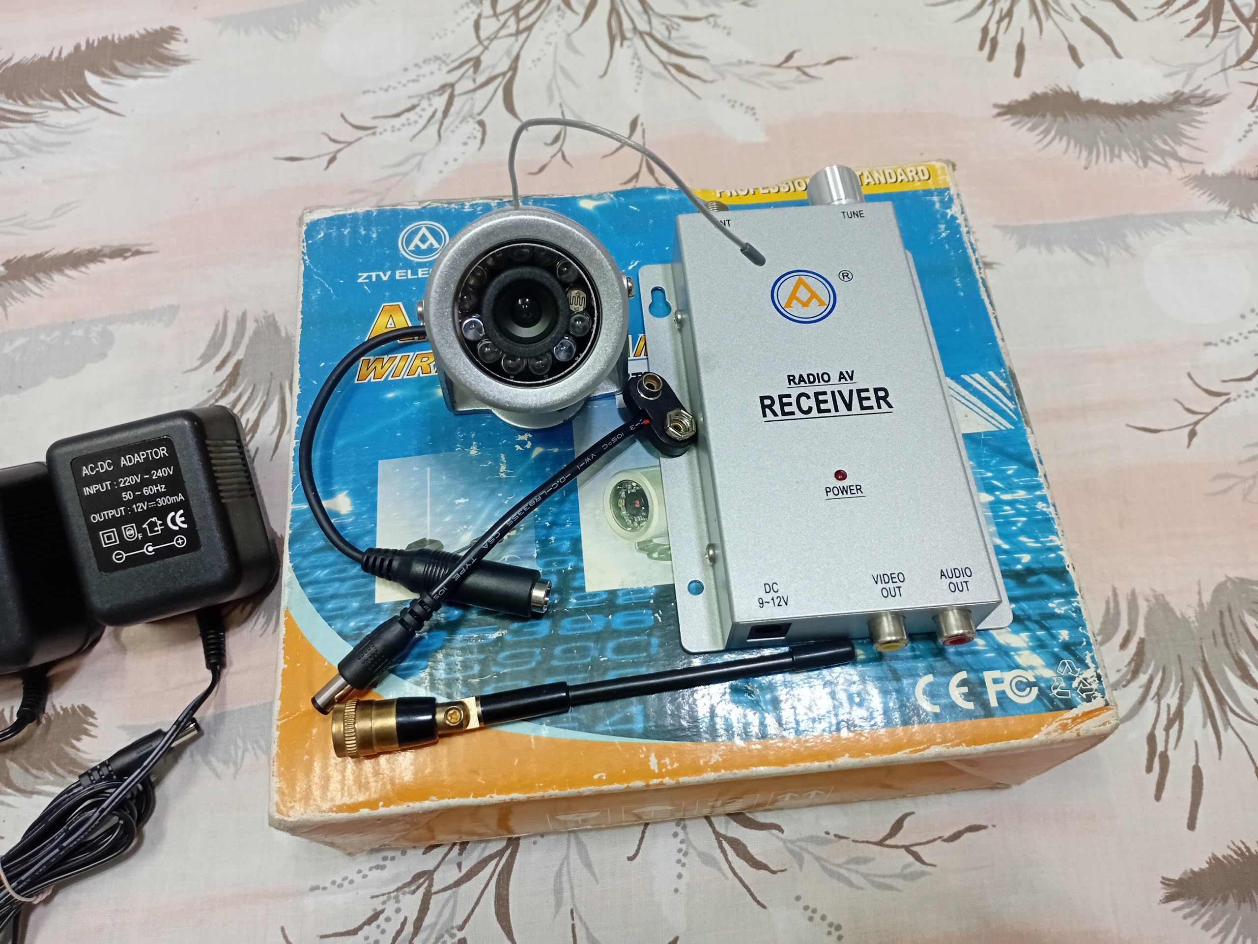 دوربین مدار بسته بیسیم گیرنده AV دو عدد آداپتور آنتن . سوکت آداپتور باتری خور . جعبه . در حد آکبند تست شده سالم بسیار با کیفیت همه چیز فابریک مدت ها داخل انبار بوده و استفاده نشده .