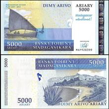 یک برگ اسکناس 5000 آریاری ماداگاسکار