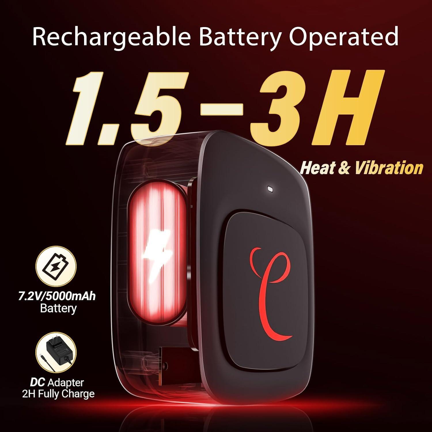 باتری قابل شارژ: این پد گرمایش بیسیم که با یک باتری 7.2 ولت 5000 میلیآمپر ساعتی کار میکند، تا 3 ساعت گرمای آرامشبخش (حدود 1.5 ساعت در حالت پرقدرت با گرما و ماساژ) فراهم میکند. طراحی آن به گونهای است که انرژی را به طور کارآمدی مانند یک باتری 3.7 ولت 10000