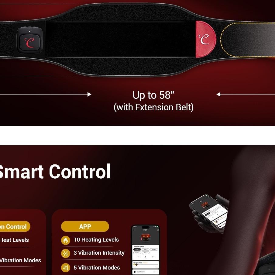 سیستمهای کنترل دوگانه: برای گزینههای بیشتر، کنترل از طریق اپلیکیشن یا برای استفاده سریع، کنترل از طریق دکمه را انتخاب کنید. اپلیکیشن 10 سطح گرما، 3 قدرت لرزش و 5 حالت ماساژ را ارائه میدهد. پنل دکمهها دارای 3 تنظیم گرما و 3 تنظیم ماساژ است و برای ایمنی هر