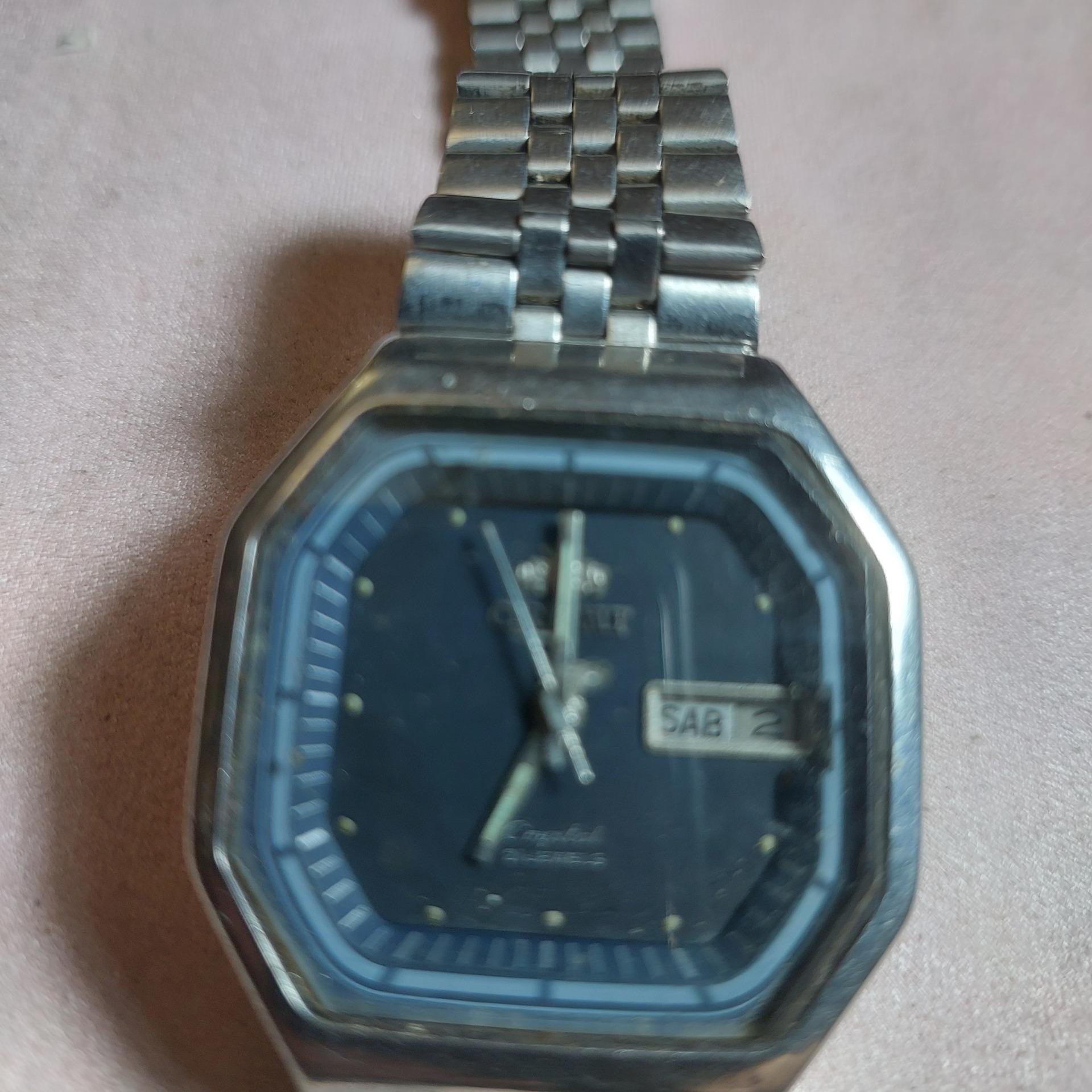 سلام دوستان ساعت مچی اورینت اصل ژاپن و اورجینال اصل و اصل هیچ قطعه ای عوض نشده از اول سالم بوده بنده از مغازه ورثه یک ساعت ساز مرحوم خرید کردم که چندین دهه در مغازه بکر مانده بود و به دلیل حفظ اورجینال باقی ماندن و حفظ اصالت اصل بودن پولیش یا صفحه و یا شیشه عوض نشده به شرط اصل اصل، کارکردش عالیه این ساعت اورینت جزء بهترین قاب و خاصه به دلیل حساسیت کالا عودت نداریم.