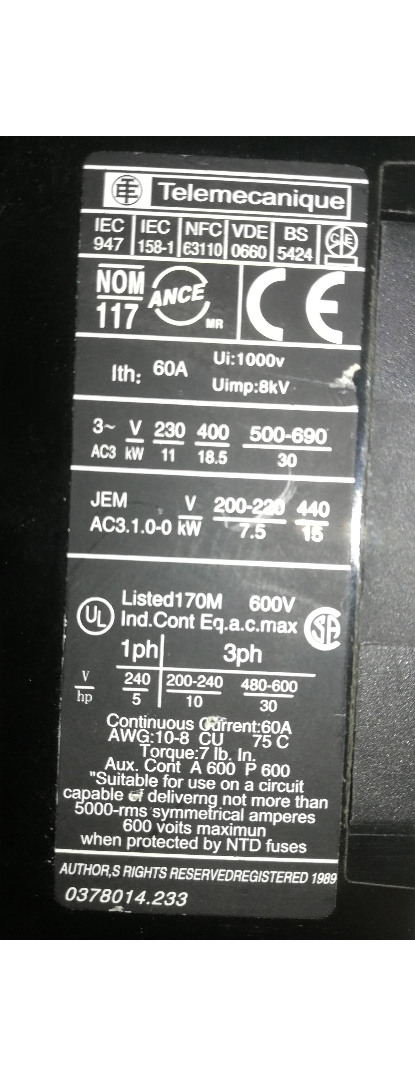 کنتاکتور 60 آمپر telemecanique (اشنایدر) نو