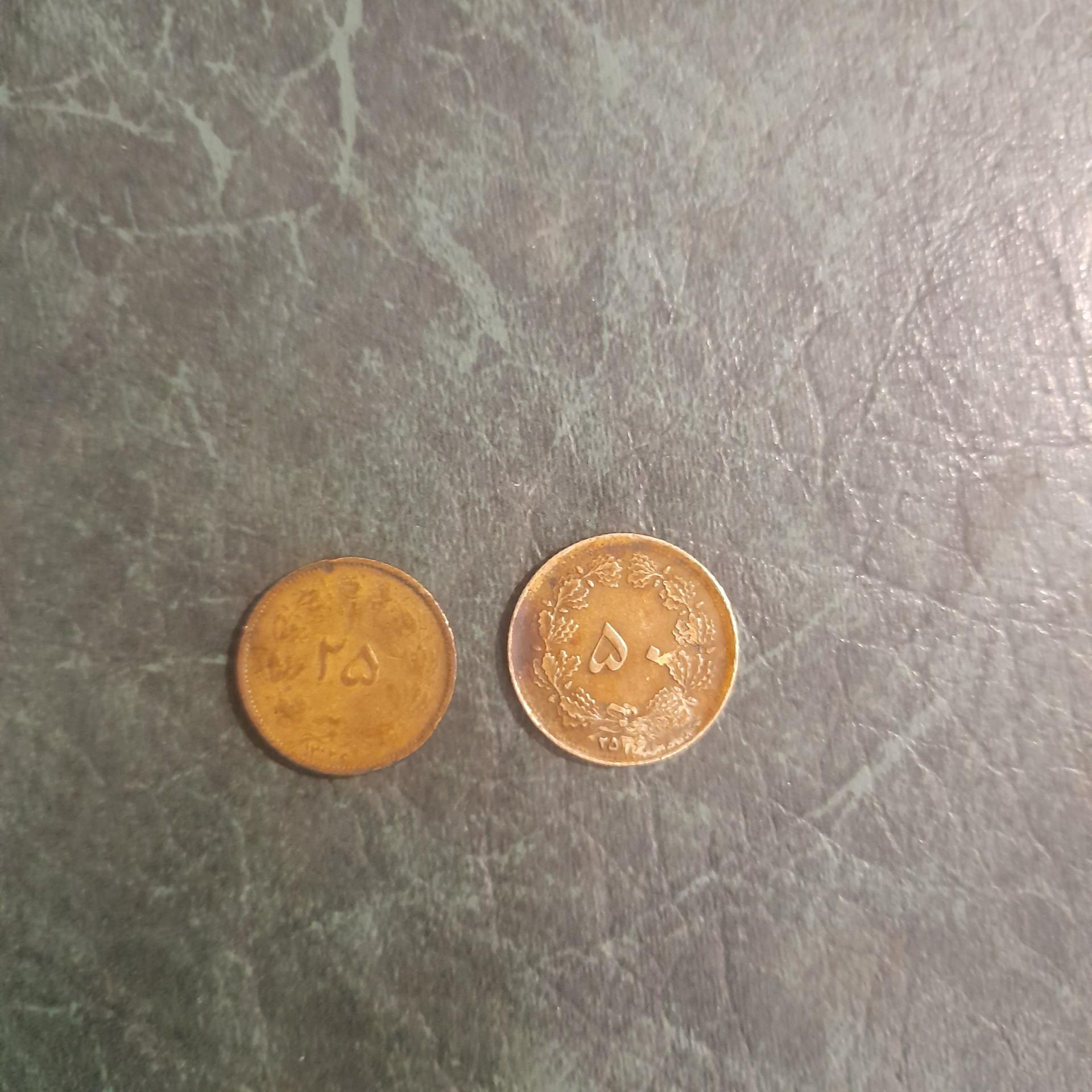 دوتا سکه برنجی دینار قدیم 50 و 25 دینار