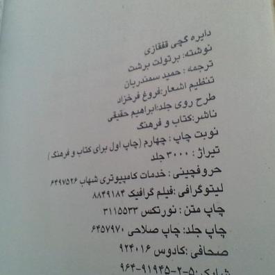 کتاب دایره گچی قفقازی تالیف برتولت برشت چاپ افست