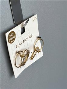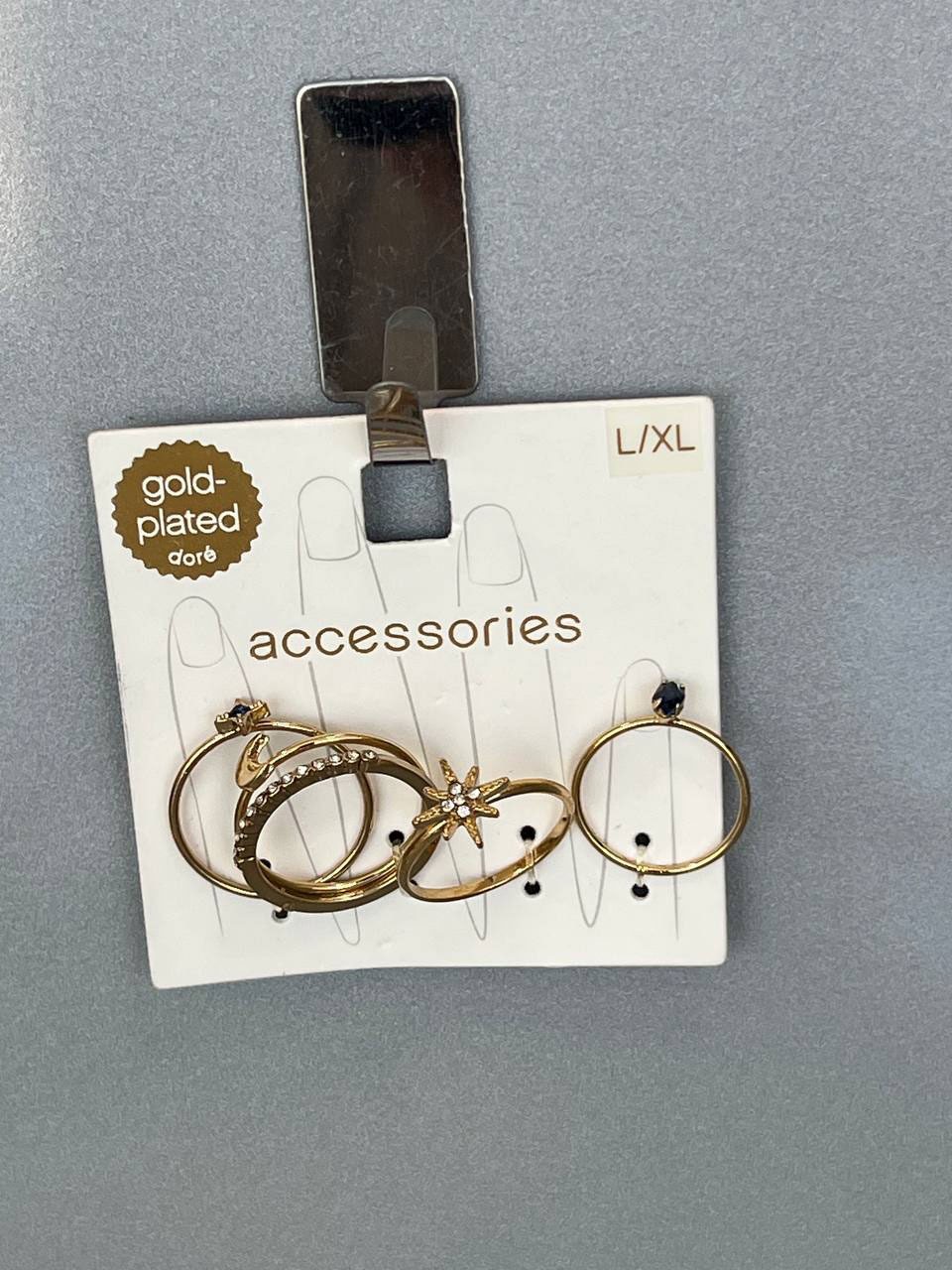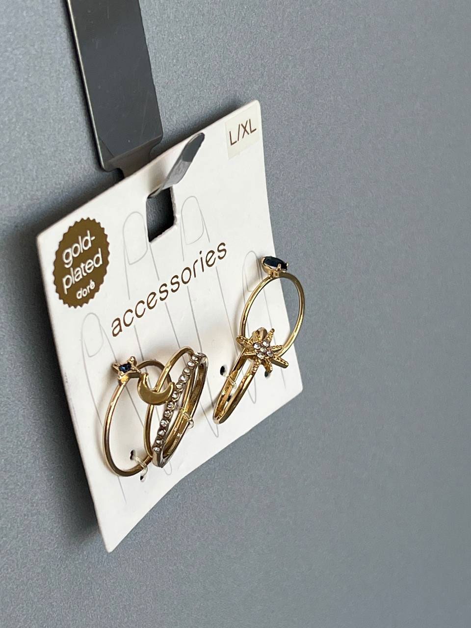 این ست حلقه شامل چهار عدد حلقهی طلایی با طراحیهای متفاوت و مکمل است. هر حلقه دارای جزئیاتی منحصربهفرد است؛ از نماد ماه و ستاره با نگینهای درخشان گرفته تا طراحی کلاسیک با سنگ تیرهرنگ که تضادی دلنشین ایجاد میکند. این حلقهها با آبکاری طلا (gold-plated) ساخته شدهاند که جلوهای لوکس و درخشان به آنها میبخشد، بدون اینکه قیمت آنها سنگین باشد.