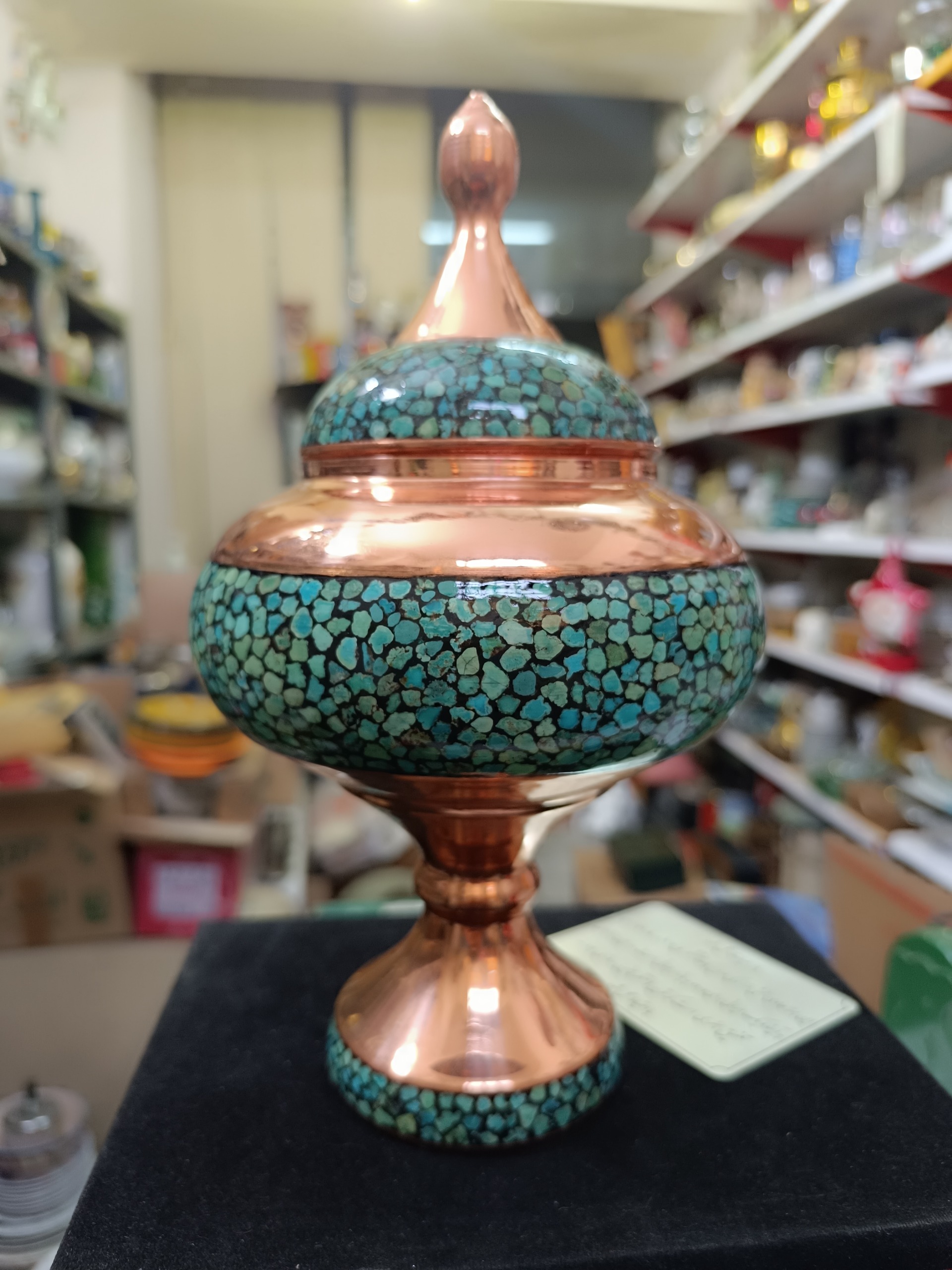 شکلات خوری آجیل خوری ، کار ارزشمند و هنرمندانه ، تلفیقی از هنر و صنعت ، فیروزه کوب ، شیک و مجلسی و در عین حال تزیینی ، کیفیت و ابعاد مطابق تصویر ، نو و تمیز و کاملا دست اول ، قیمت این کار تو بازار بیشتر از این حرفهاست