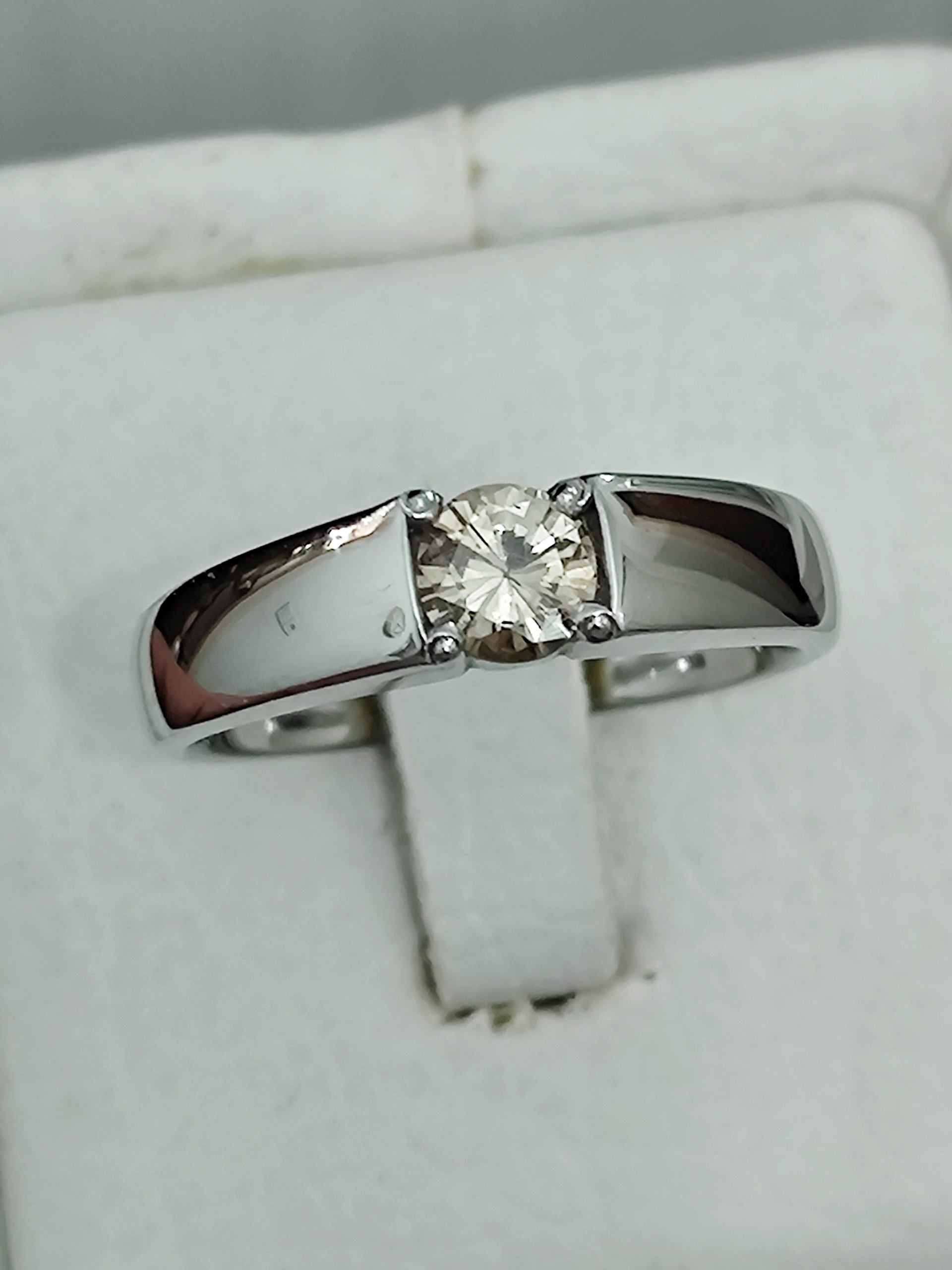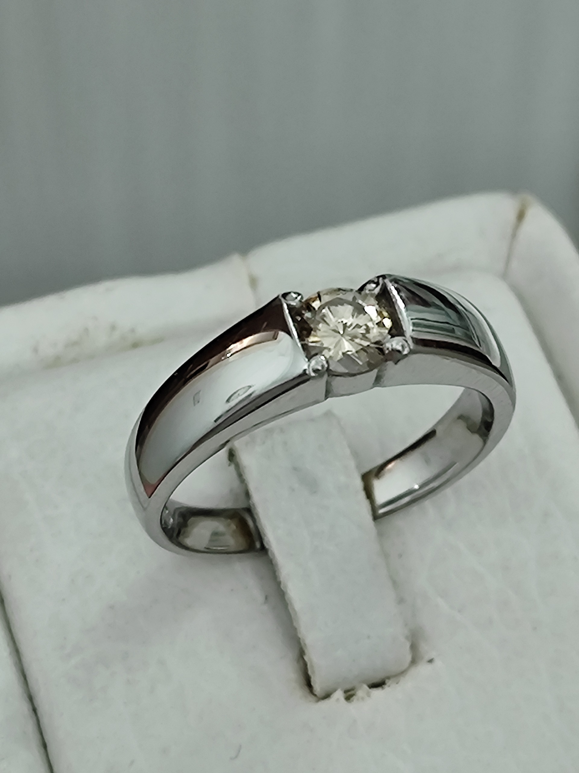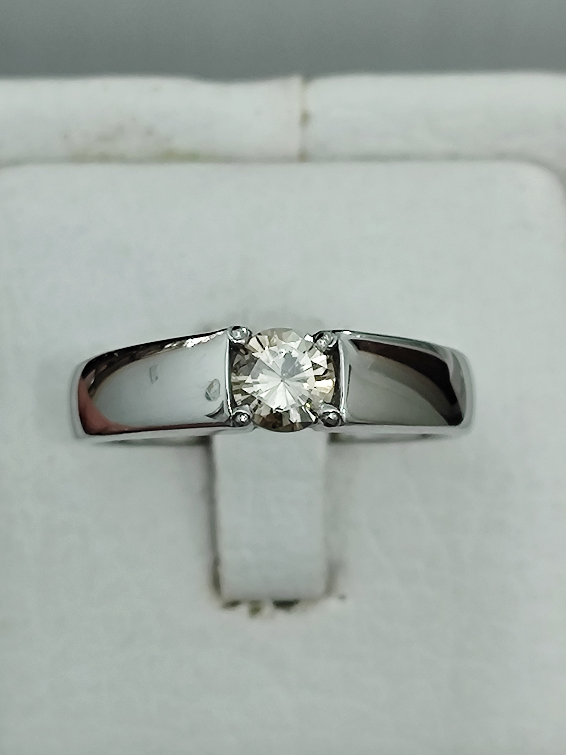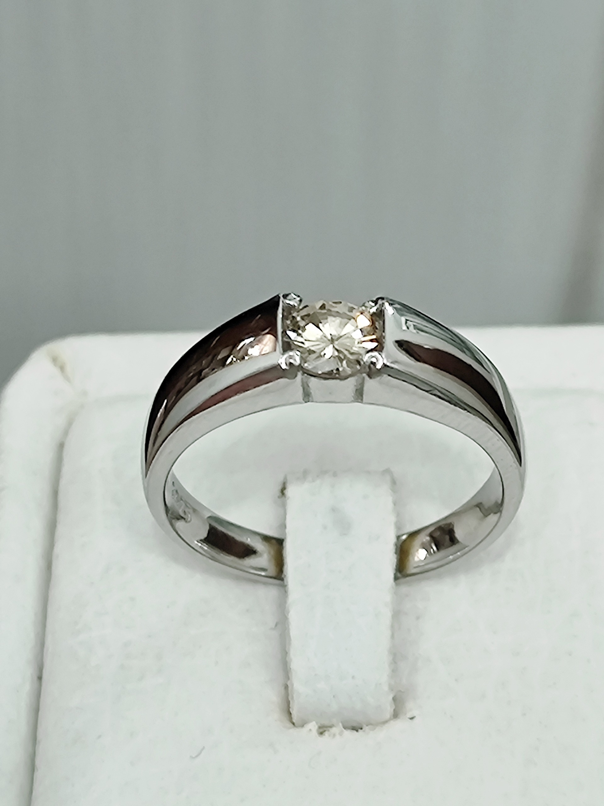 حلقه زیبا با سنگ الماس طبیعی افریقا 0/55 قیراطی کمی بیشتر از نیم قیراط رکاب نقره 925 ایتالیایی ابکاری رادیوم سایز 60