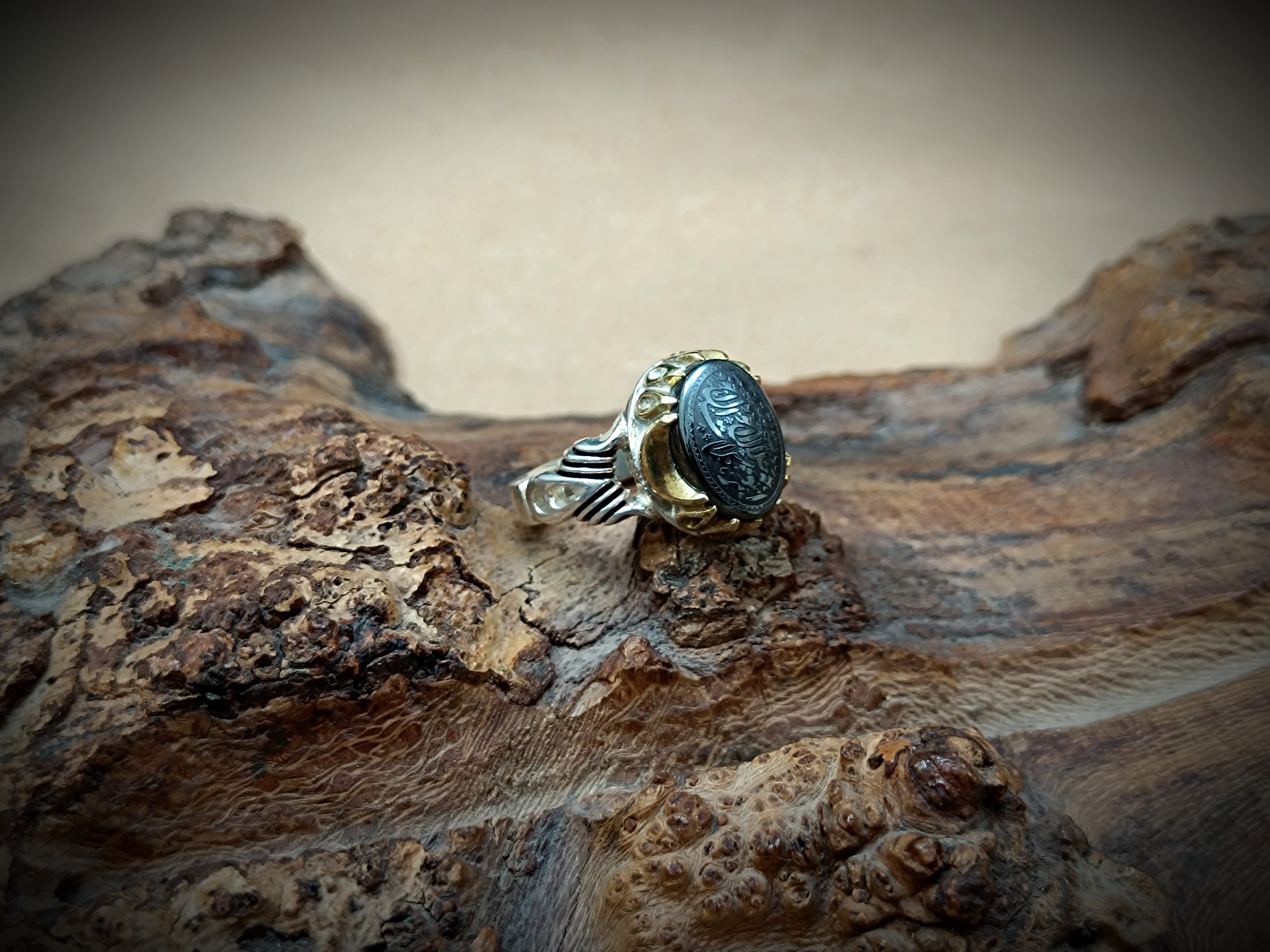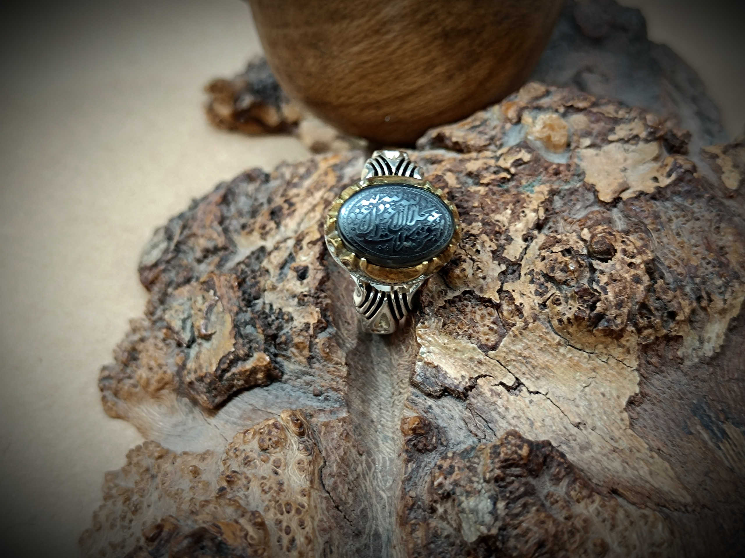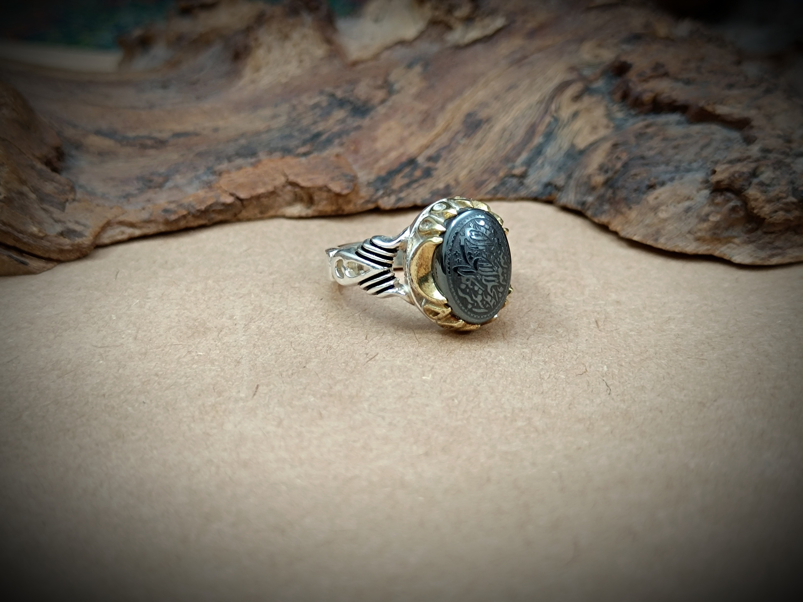 انگشتر نقره مردانه با نگین حدید خطی (هفت جلاله)