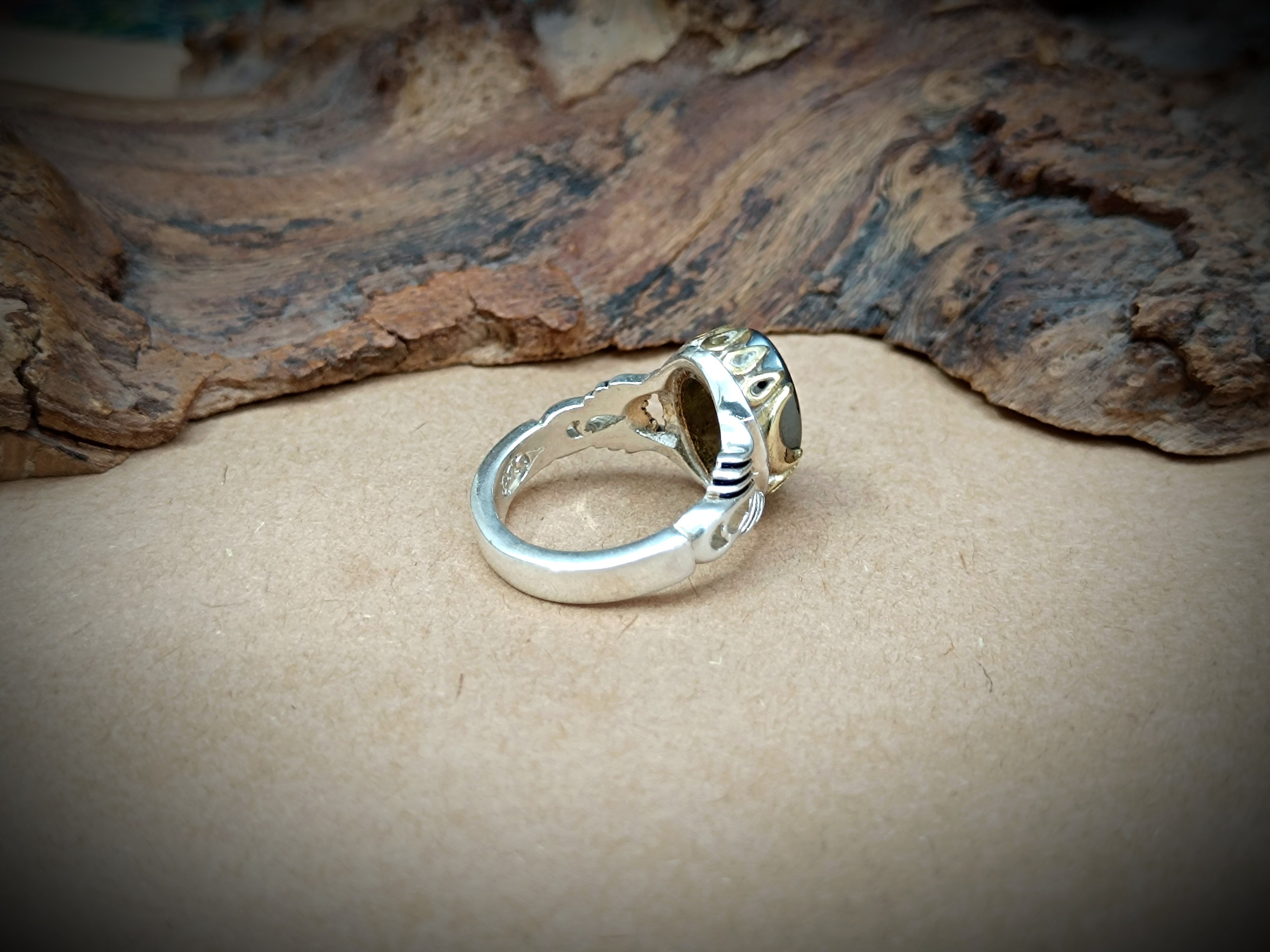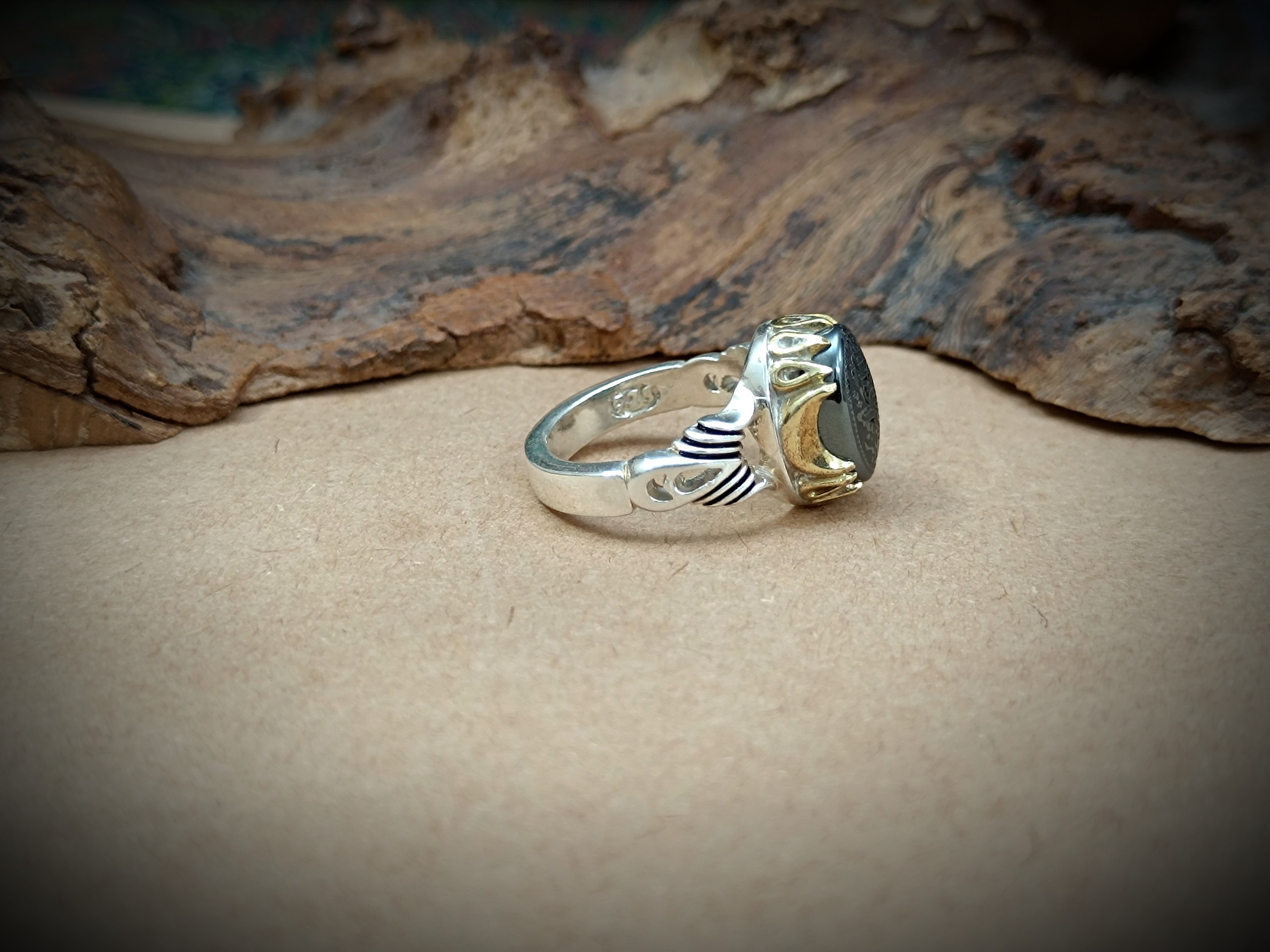 انگشتر نقره مردانه با نگین حدید خطی (هفت جلاله) اصیل و طبیعی