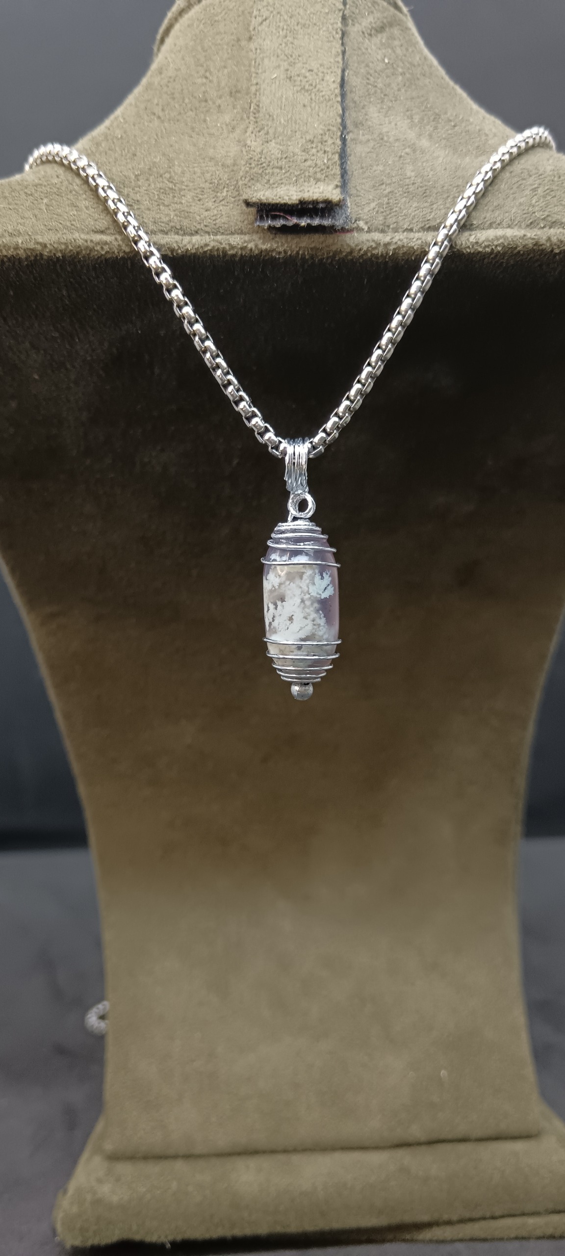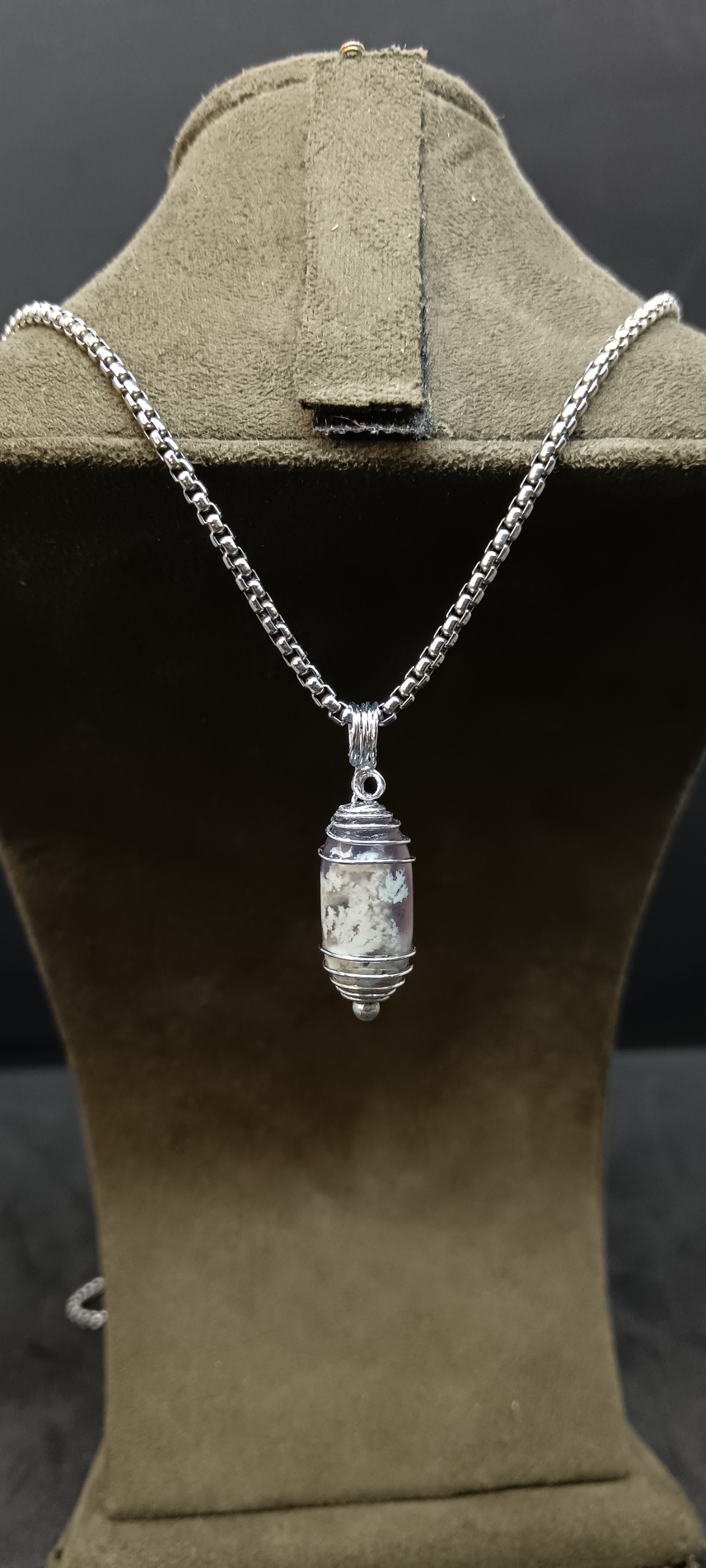 گردن آویز سنگ عقیق شجر بهاری طبیعی و معدنی با طرح کپسولی و سیمبافت سایز حدود 1،5سانت قیمت بدون زنجیر
