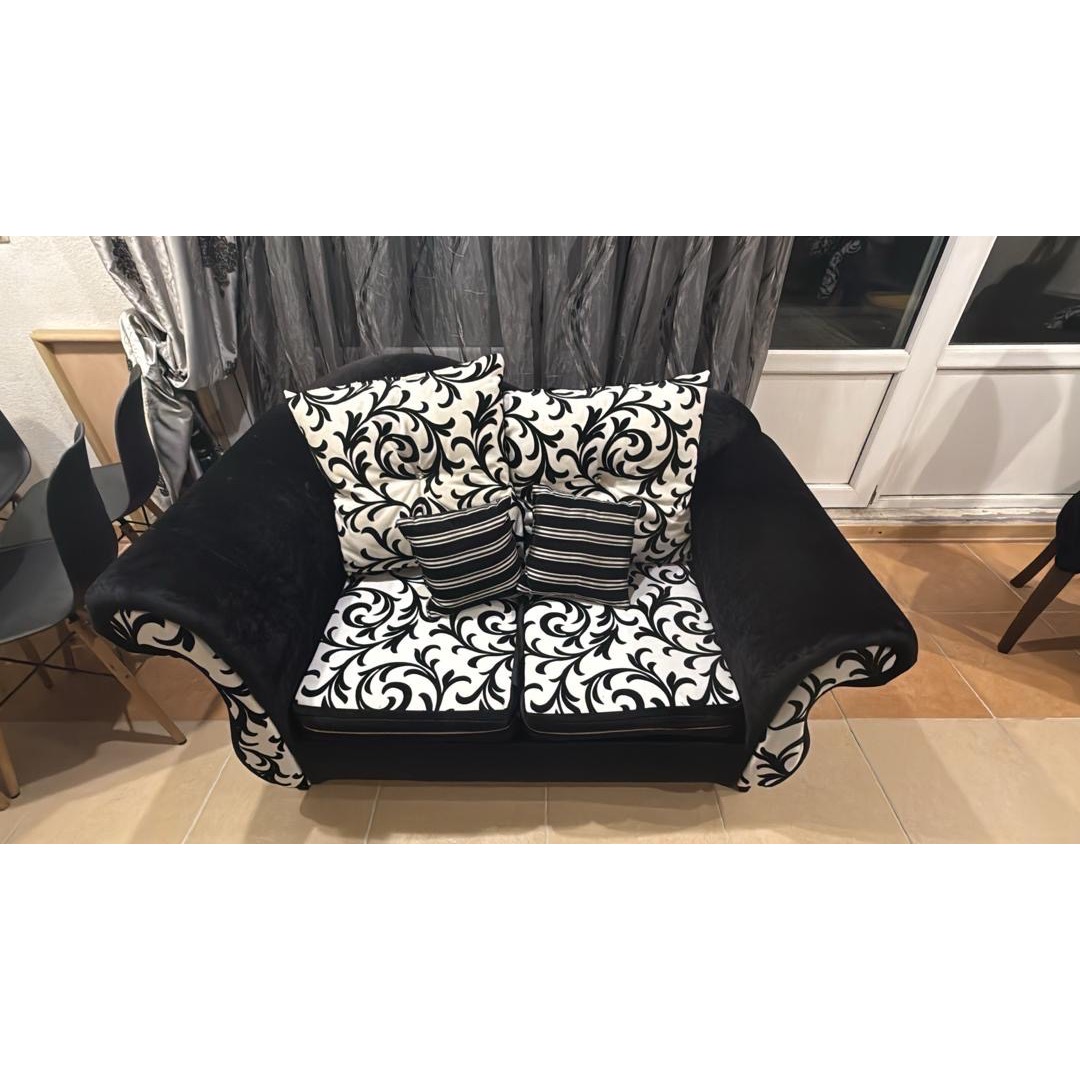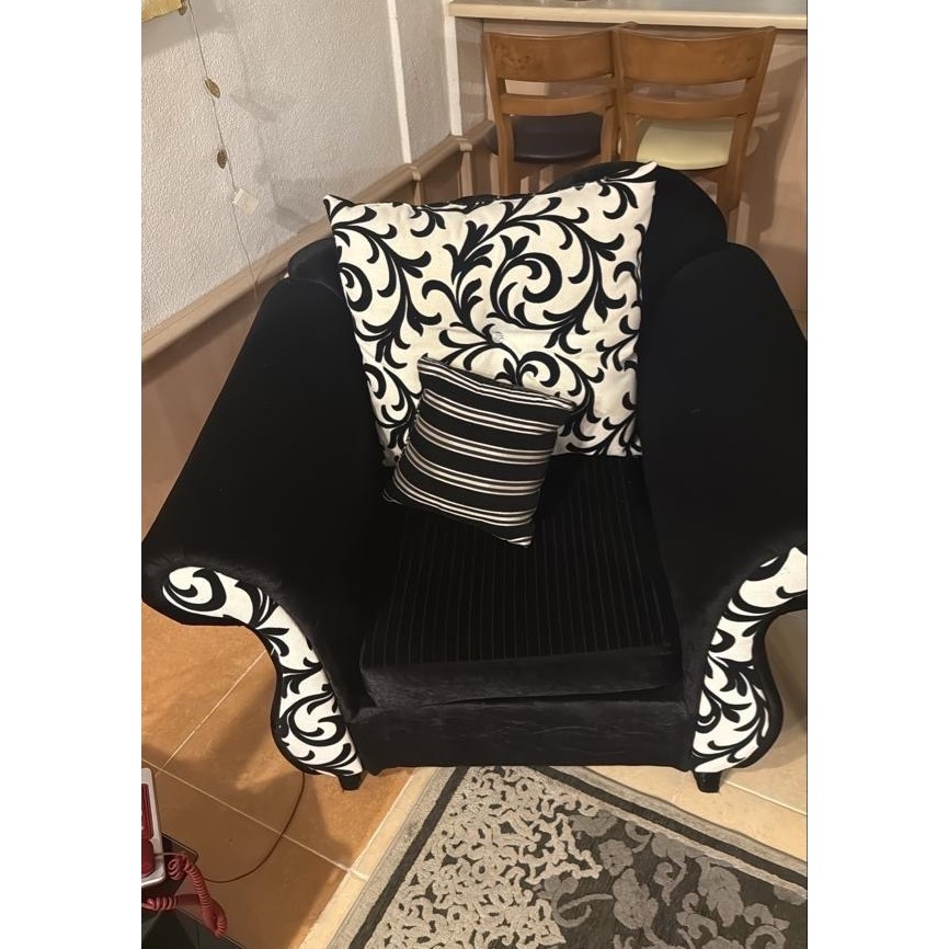 مبل شامل کاناپه سه نفره و یککاناپه دو نفره و دو عدد تکی هست کفی مبله در قسمت نشیمن دو رو هست یک طرف مشکی ساده و یک طرف پارچه سفید با گلهای مشکی که درعکاسها بعضی هارو از طرف مشکی گذاشتیم بعضی از طرف سفید و پشتی ها هم در قسمت تکیه گاه دو رو هست بسیار مرتب و تمیز ،مبلها در ویلایی در محموداباد مازندران میباشد اگر در تهران هستید براتون ارسال میکنم