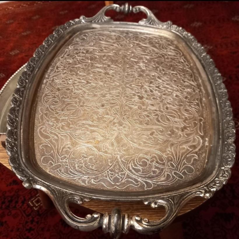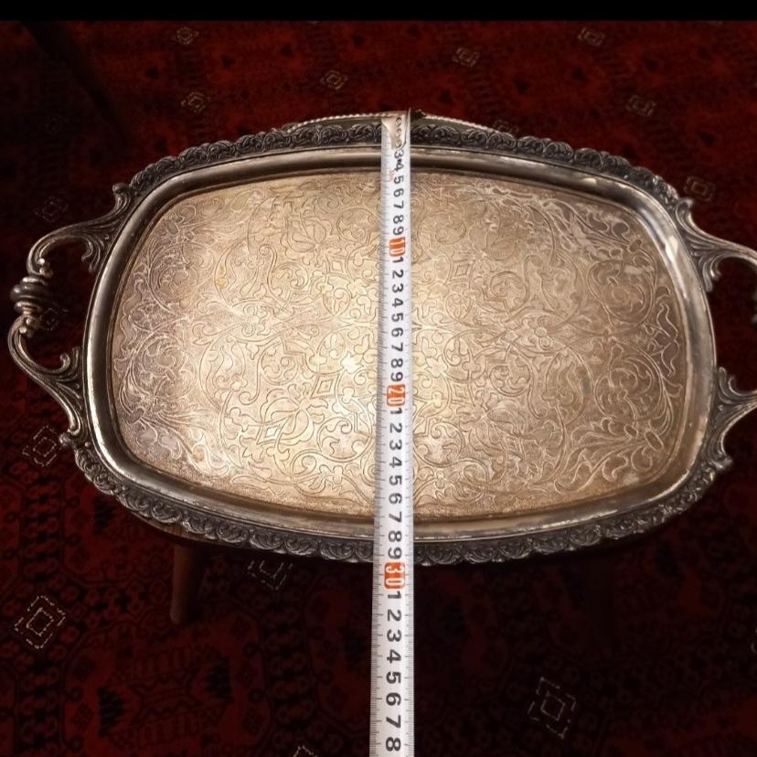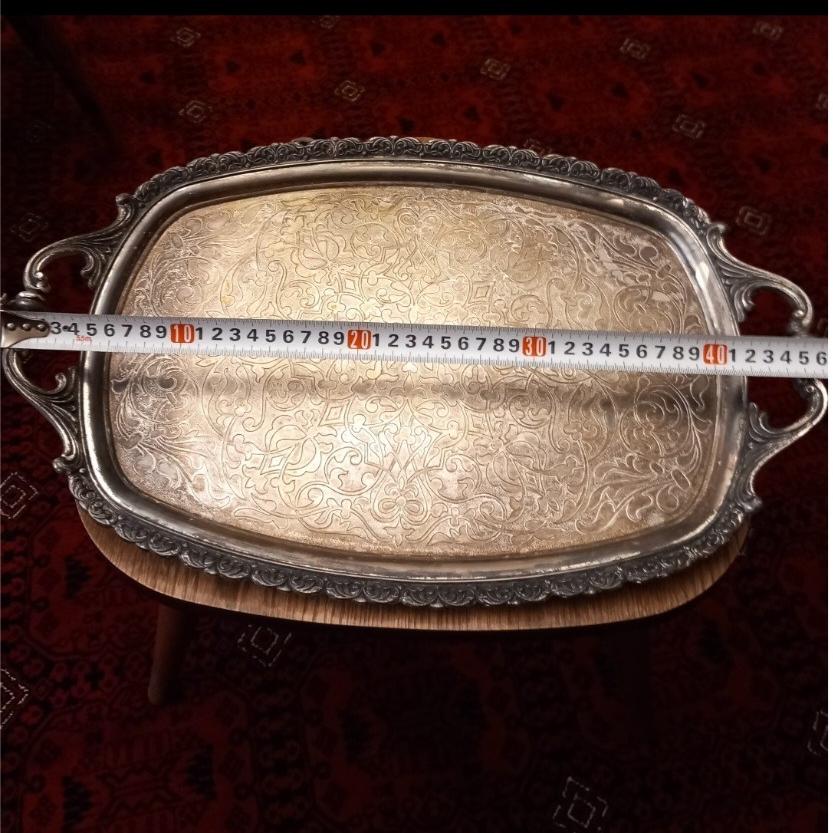 سیلورپلیت ایتالیایی/ برند بسیار معروف و کمیاب BREVETTATO / نقره عیار پایین ایتالیا/ بسیار ارزشمند و کمیاب/ یک کار بسیار خاص، آنتیک و کلکسیونی/ سایز کوچکتر آن هم در فروشگاه موجود میباشد/ در داخل تصاویر متر گذاشته شده تا ابعاد و اندازه آن مشخص باشد/ در 2سایز بزرگ و کوچک موجود میباشد/ در فروشگاه آگهی این سینی ها هم بصورت تکی بارگذاری شده و هم بصورت جفت/