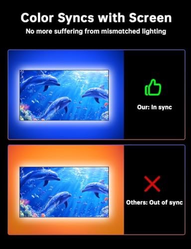 LEDهای ممتاز: از روشنایی و اشباع رنگ پر جنب و جوش، قابل تنظیم و اشباع رنگ با LEDهای رنگی با کیفیت بالا لذت ببرید. با طول قابل تنظیم 14.7 فوت، نور پس زمینه LED تلویزیون تا 50000 ساعت دوام میآورد.