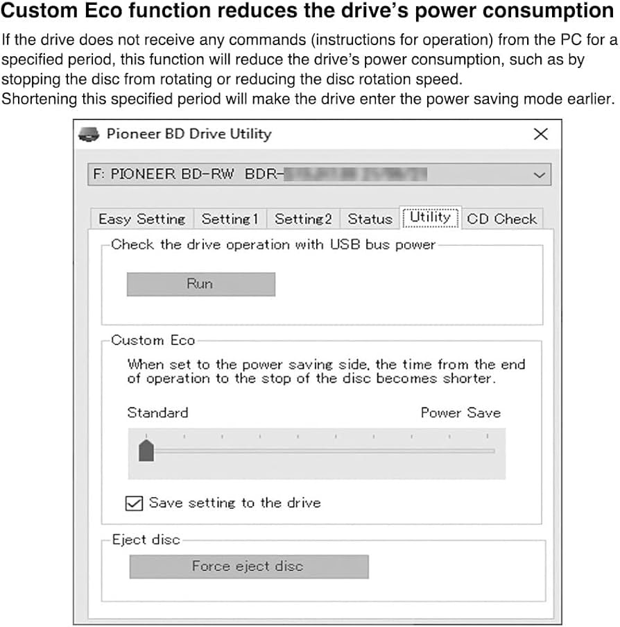 BDR-213EBK علاوه بر بهبود سرعت و دقت نوشتن، به تکامل بیشتری در عملکرد اساسی نیز دست یافته است. این اوج سالها اصلاحات در سهولت استفاده، قابلیت اطمینان و پایداری برای درایو BD محبوب Pioneer است. BDR-213EBK همچنین دارای ویژگیهای عملکردی مانند عملکرد Custom Eco است که از طریق Pioneer BDR-213EBK Drive Utility در دسترس است. Custom Eco به کاهش مصرف برق دستگاه کمک میکند. برتری Pioneer در فناوری دیسک نوری، عملکرد بیصدا، قابلیت اطمینان بالا و کیفیت برتر را ارائه میدهد. در مورد نرمافزار، CyberLink Media Suite 10 برای سیستم عامل ویندوز به صورت رایگان برای دانلود در دسترس است.
