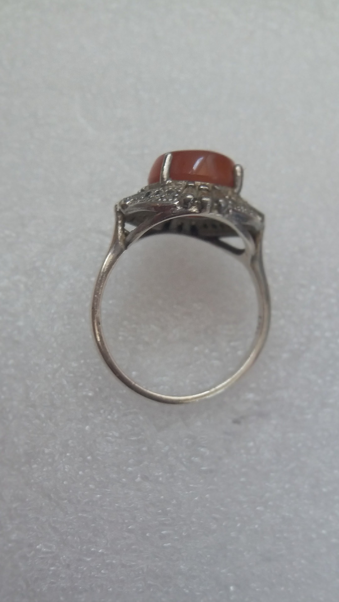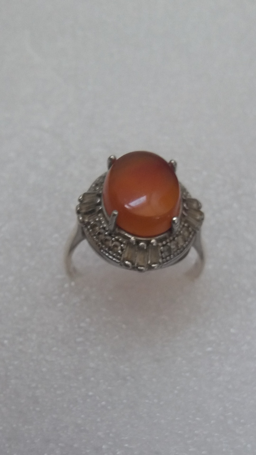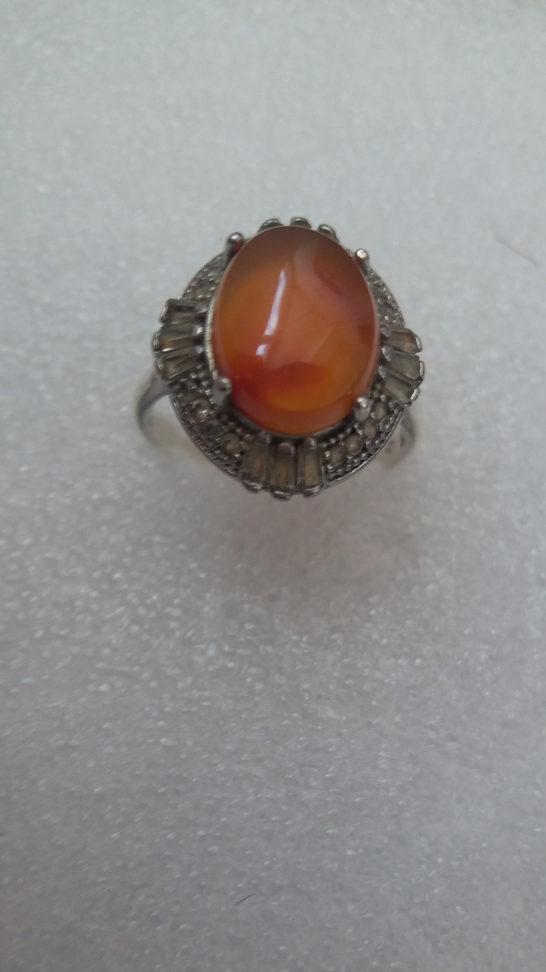 انگشتر نقره با نگین عقیق یمنی و نگینهای ریز زیرکن