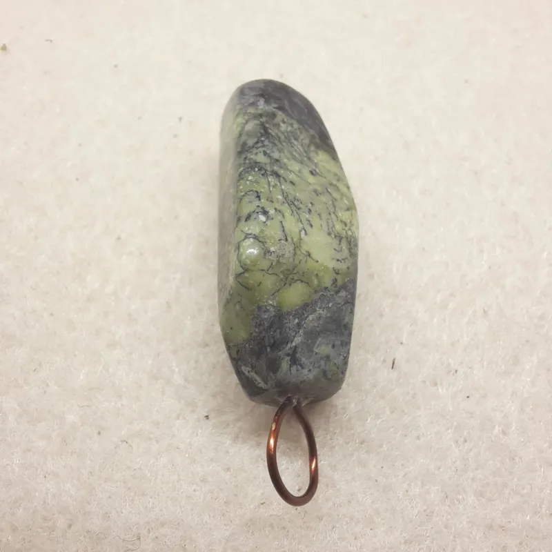 این گردن آویز دارای انواع کانی های درمانگر میباشد از جمله کانی آلوین سبز، فلز نیکل و آهن آزاد. به آهنربا واکنش نشان میدهد و جذب آن میشود.
