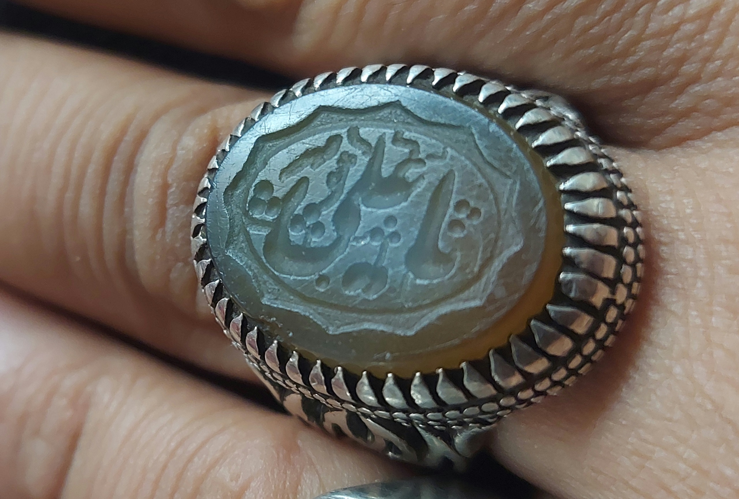 انگشتر عقیق نقره 925 خطی با نوشت یاعلی مدد