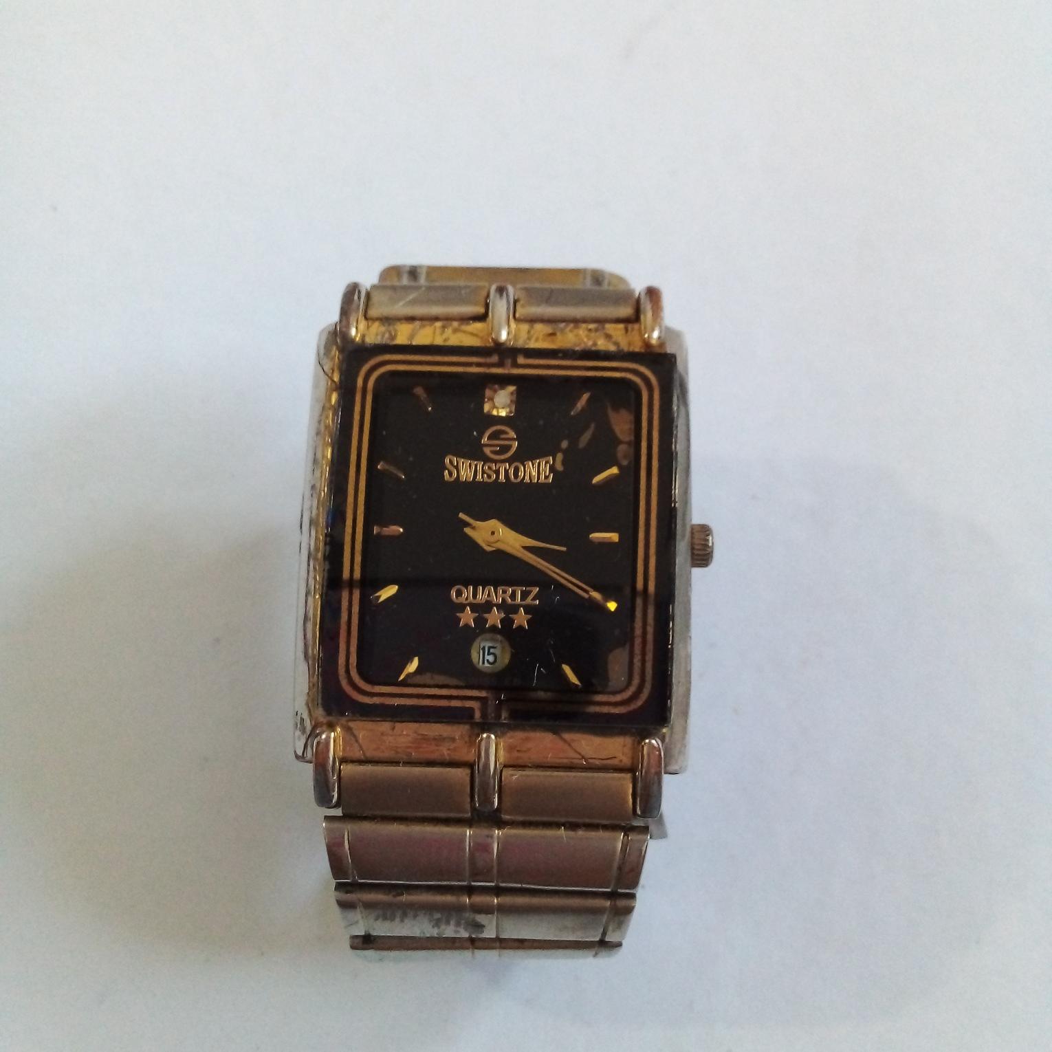 درود وروز بخیر خدمت عزیزان کاربر و سایت محترم ایسام . ساعت مچی سو ئیستون مردانه با قاب بدنه کامل وبند ناقص و تقویم دار که در حال حاضر کار میکند دقیقا طبق تصاویر . عزیزان خریدار قبل از اقدام به خرید لطفا وحتمن عکسها را ببینید وتوضیحات را کامل بخوانید وهر