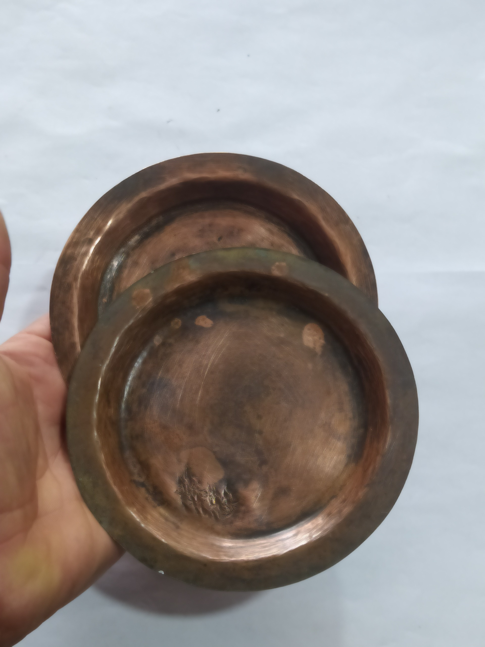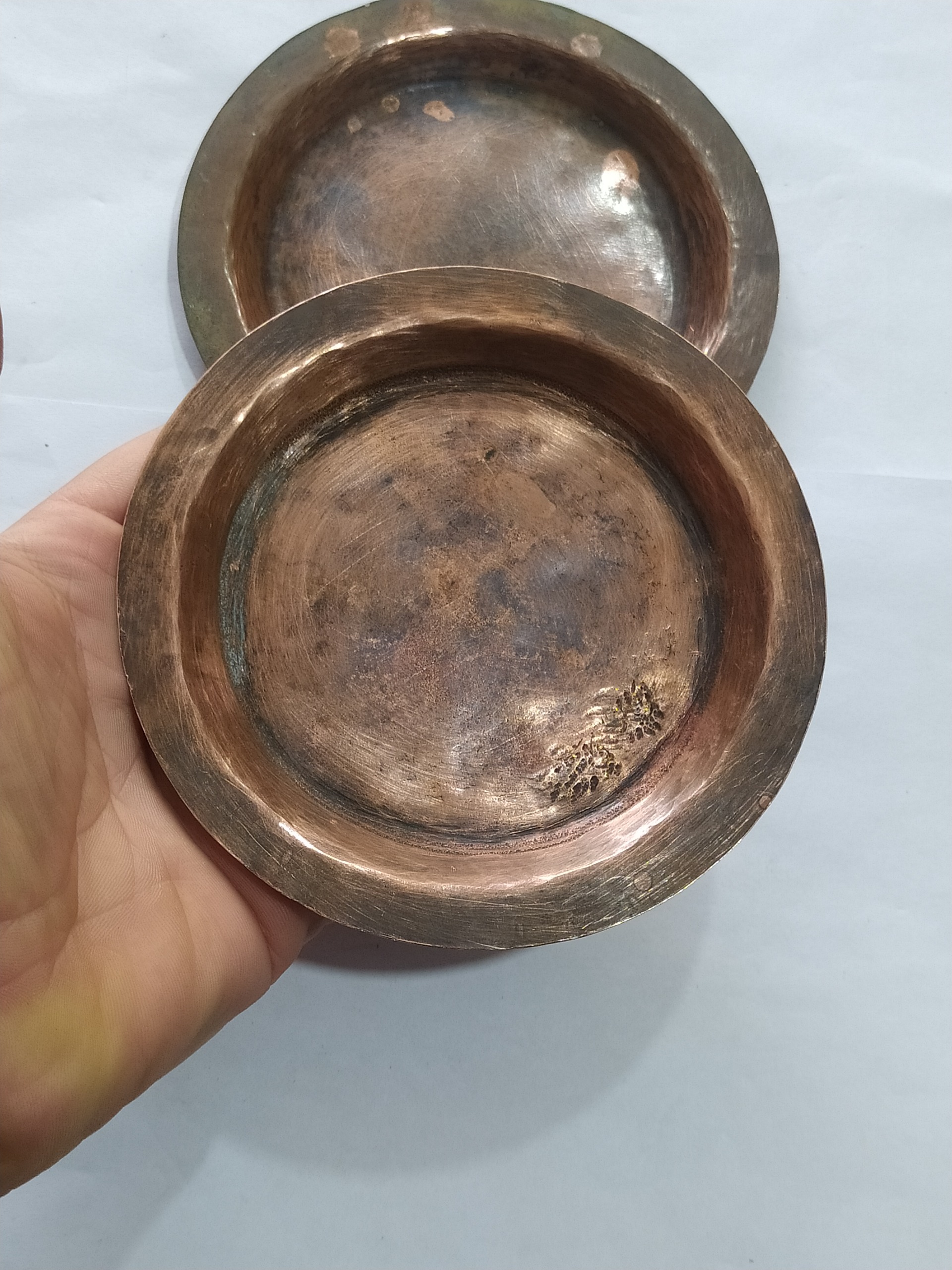 یک جفت کفه مسی قدیمی چکشی آنتیک