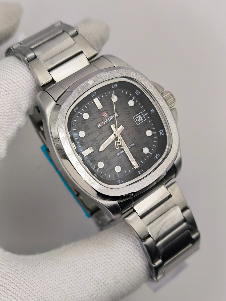 ساعت مچی عقربهای مردانه نیوی فورس مدل Nf9240 با فرم صفحه مربع طرح پتک و طراحی خاص انتخابی متفاوت برای استایلهای رسمی و روزمره است این مدل اورجینال همراه با جعبه و کارت گارانتی معتبر از فروشگاه اینترنتی روبی مد عرضه میشود دارای