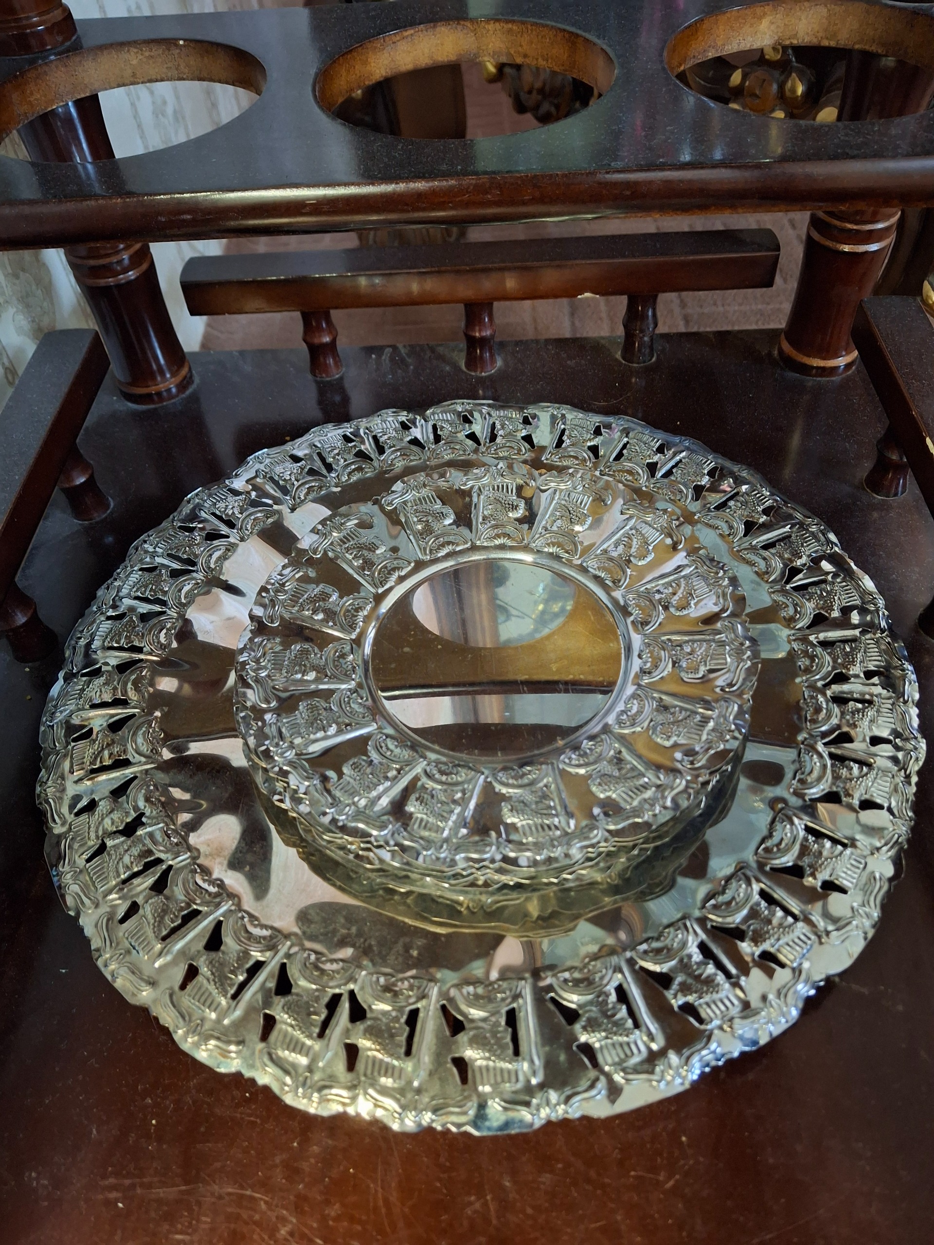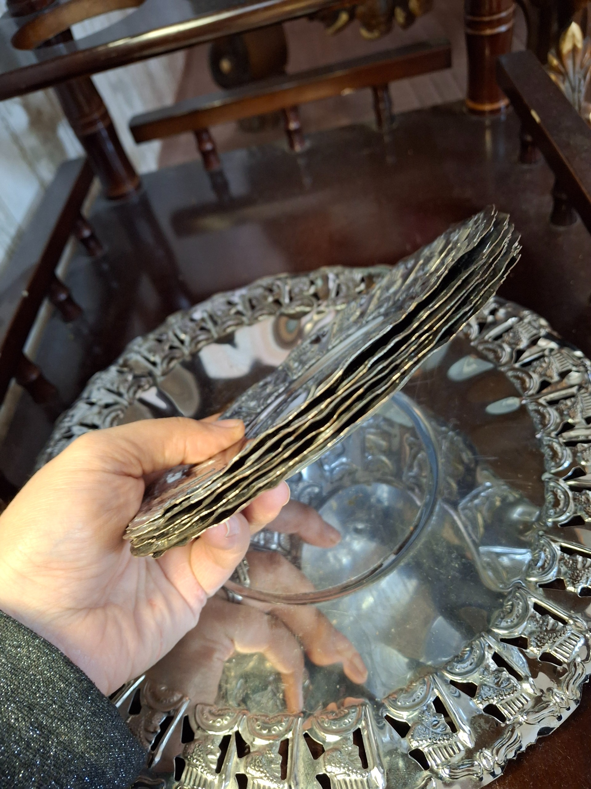 کیک خوری 7 پارچه فلز آبکاری قدیمی طرح هخامنشی