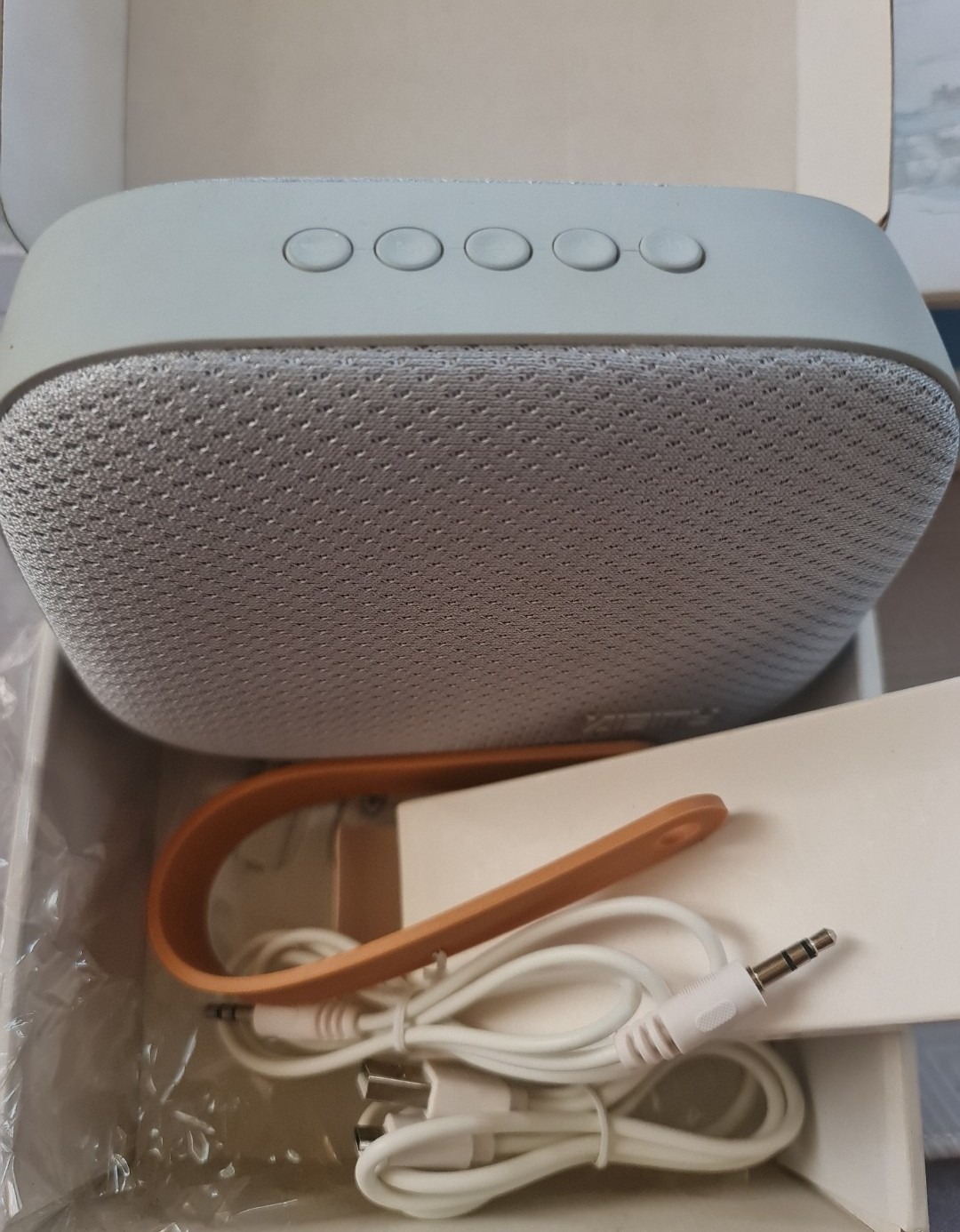 اسپیکر بلوتوث ، کیفیت صدای خوب ، دارای کابل میکرو یو اس بی جهت شارژ ، قابلیت استفاده از فلش ، مموری و AUX , دارای شارژر میکرو USB و کابل AUX و بند نگهدارنده جهت همراه داشتن اسپیکر