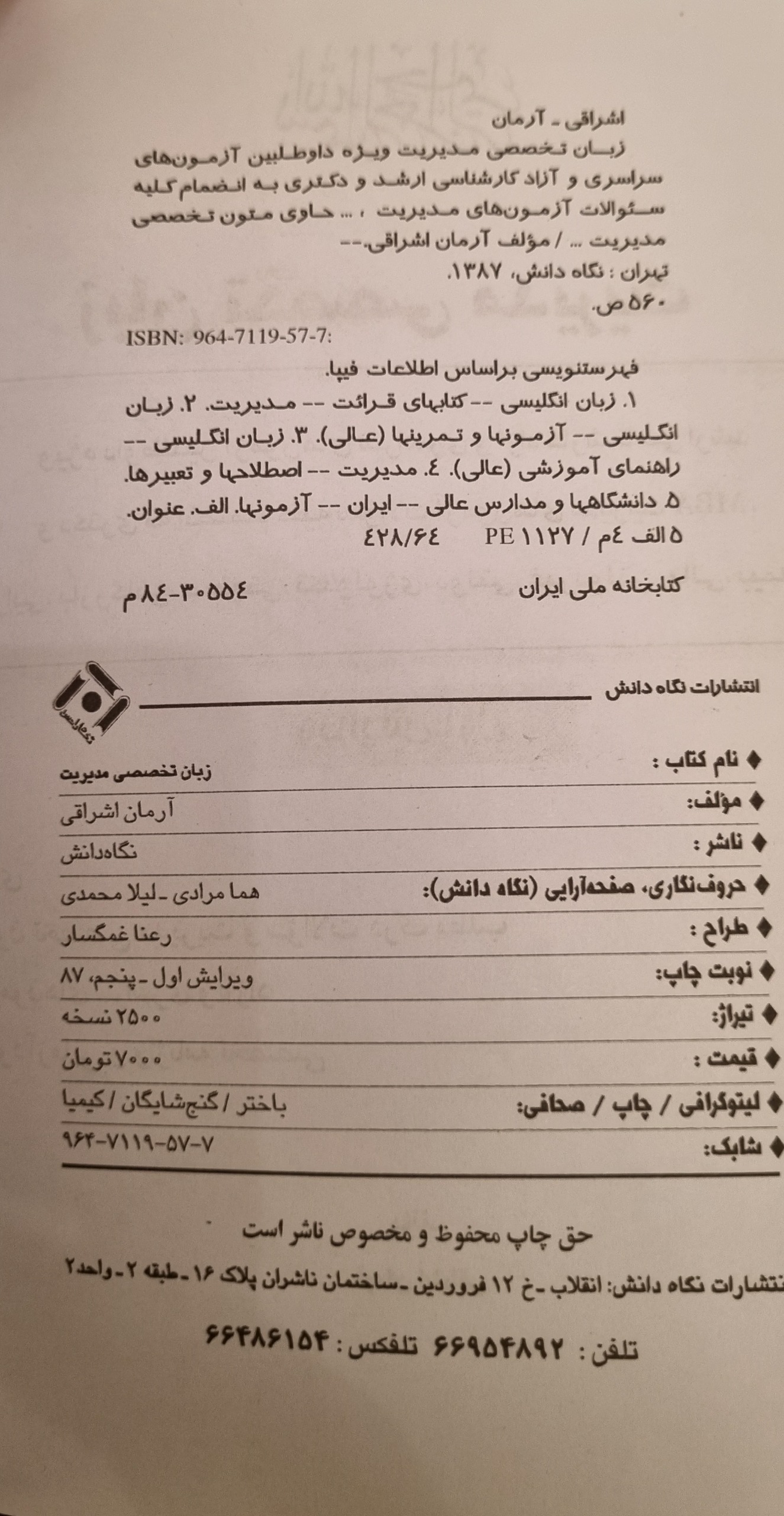 کتاب زبان تخصصی مدیریت آرمان اشراقی