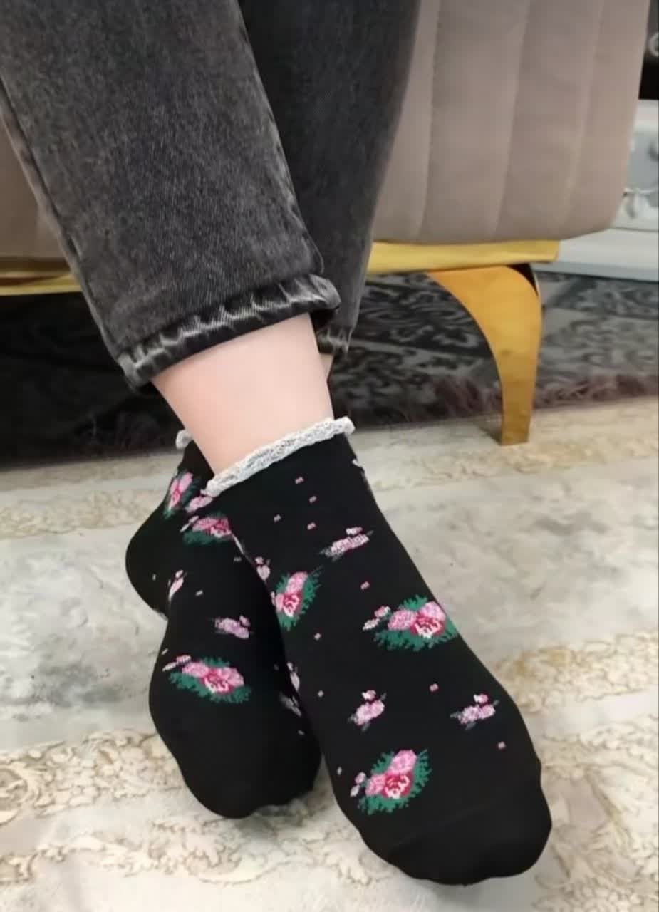 جوراب یلدایی گل قرمز لب توری جفتی 50000