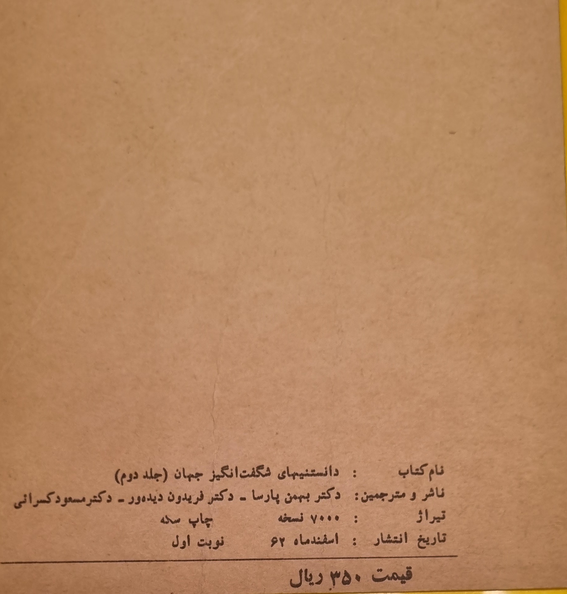 جلد پشت کتاب ترک خورده است