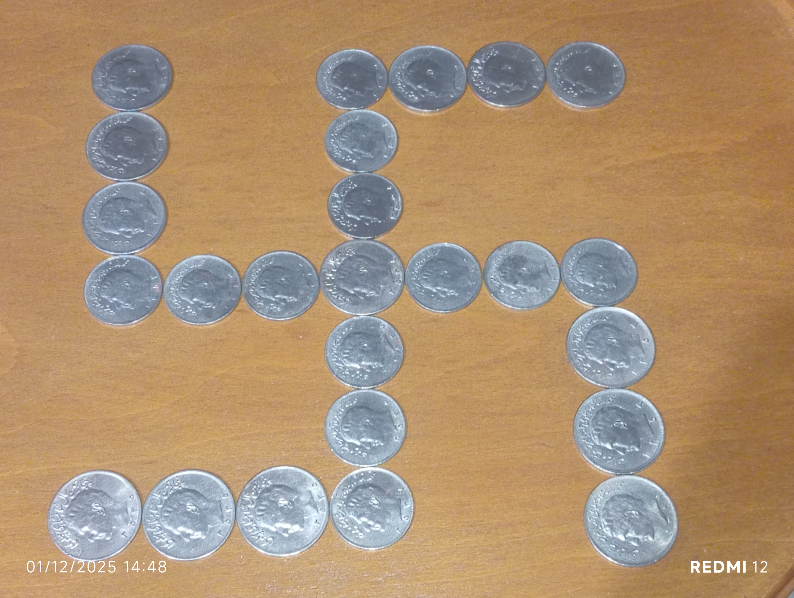 سکه شاهی بی مانند کد و تاریخ در گردونه مهر چلیپا