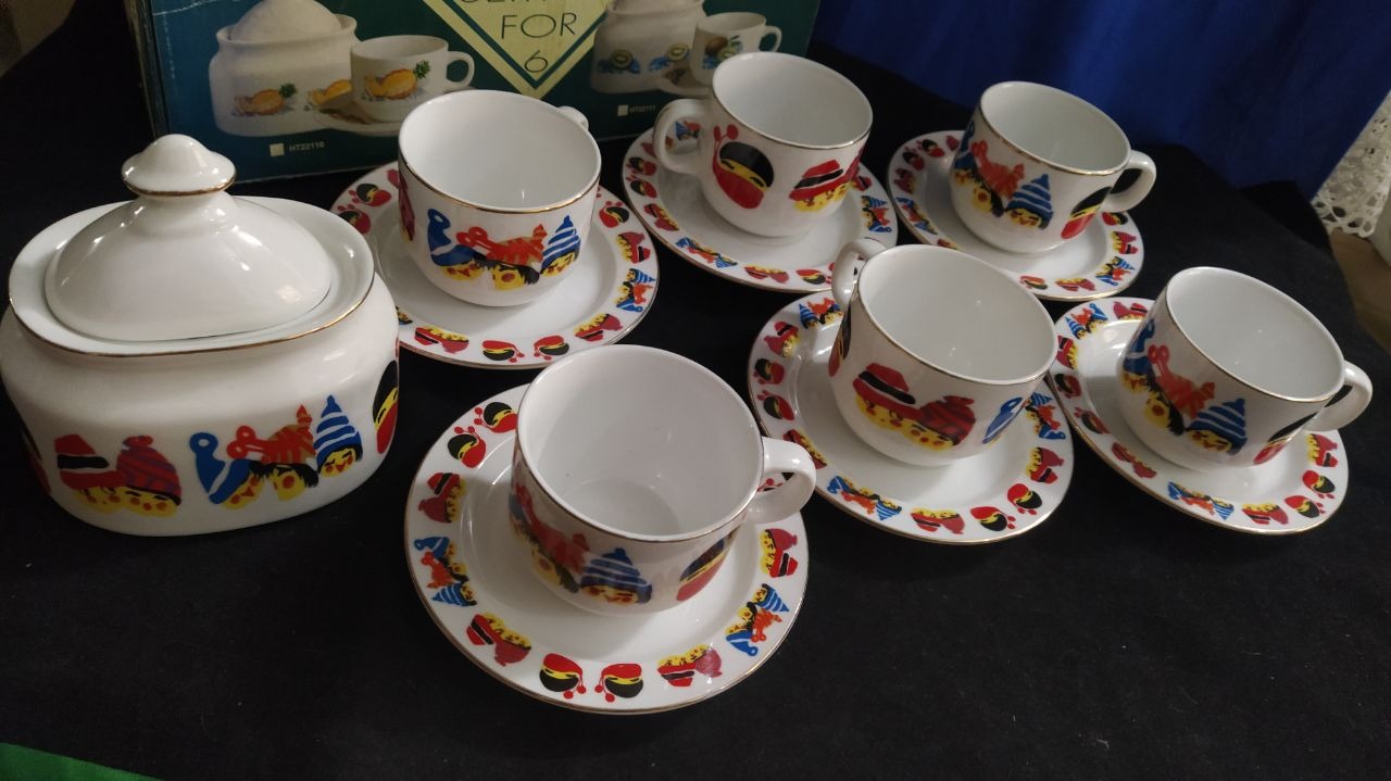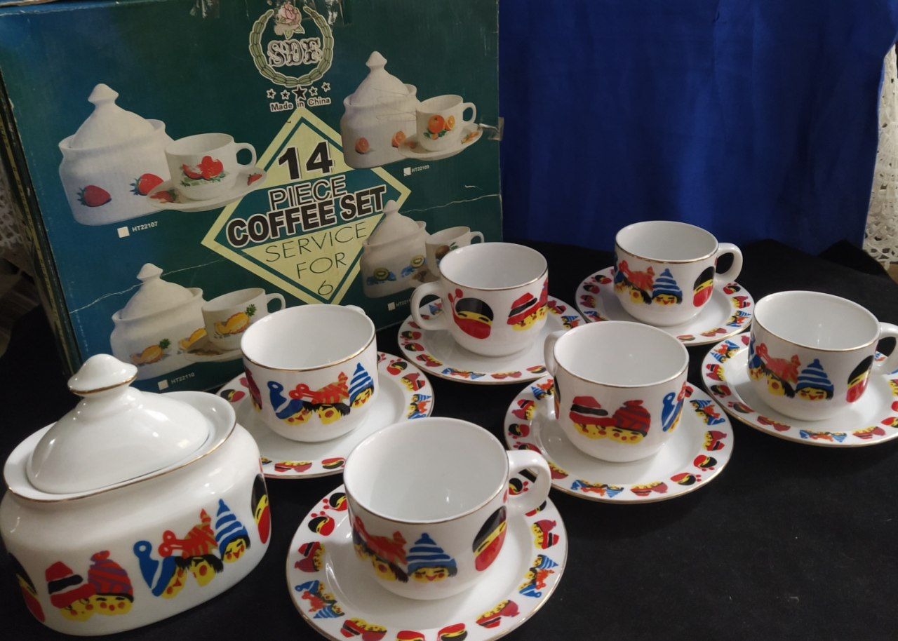 سرویس 14پارچه فنجان نعلبکی وقندان قدیمی آکبند