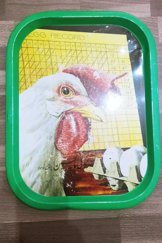 سینی فلزی قدیمی نقاشی دار تبلیغاتی به ابعاد 29×39 سانت.