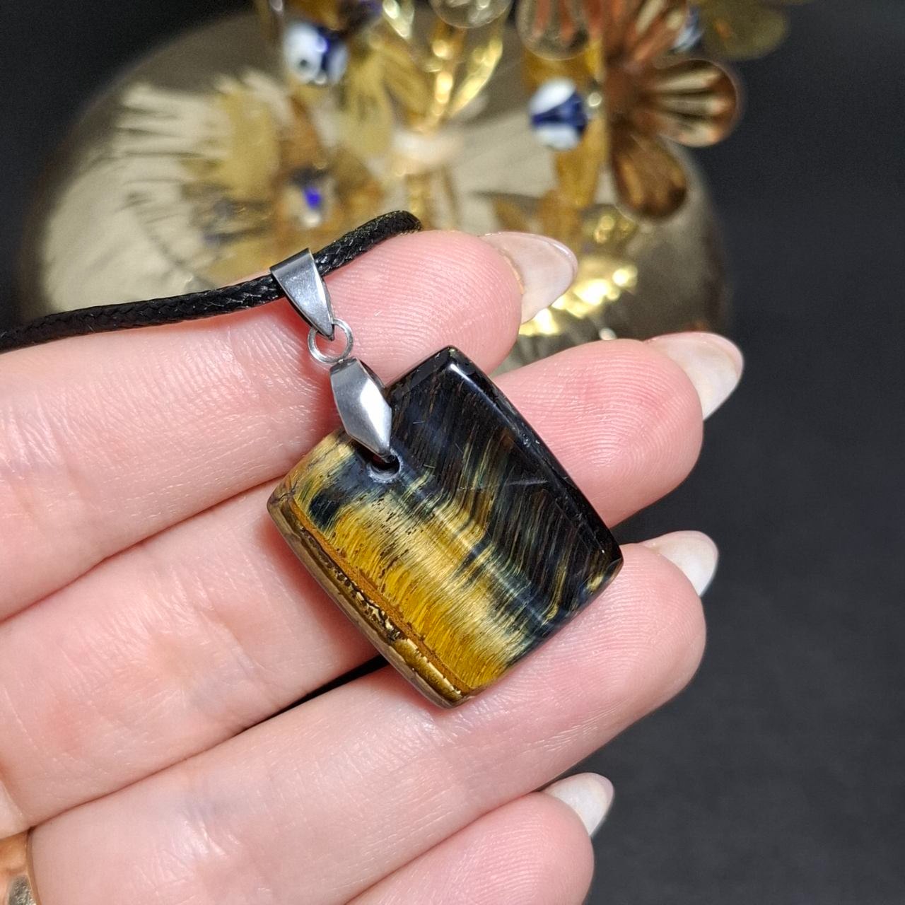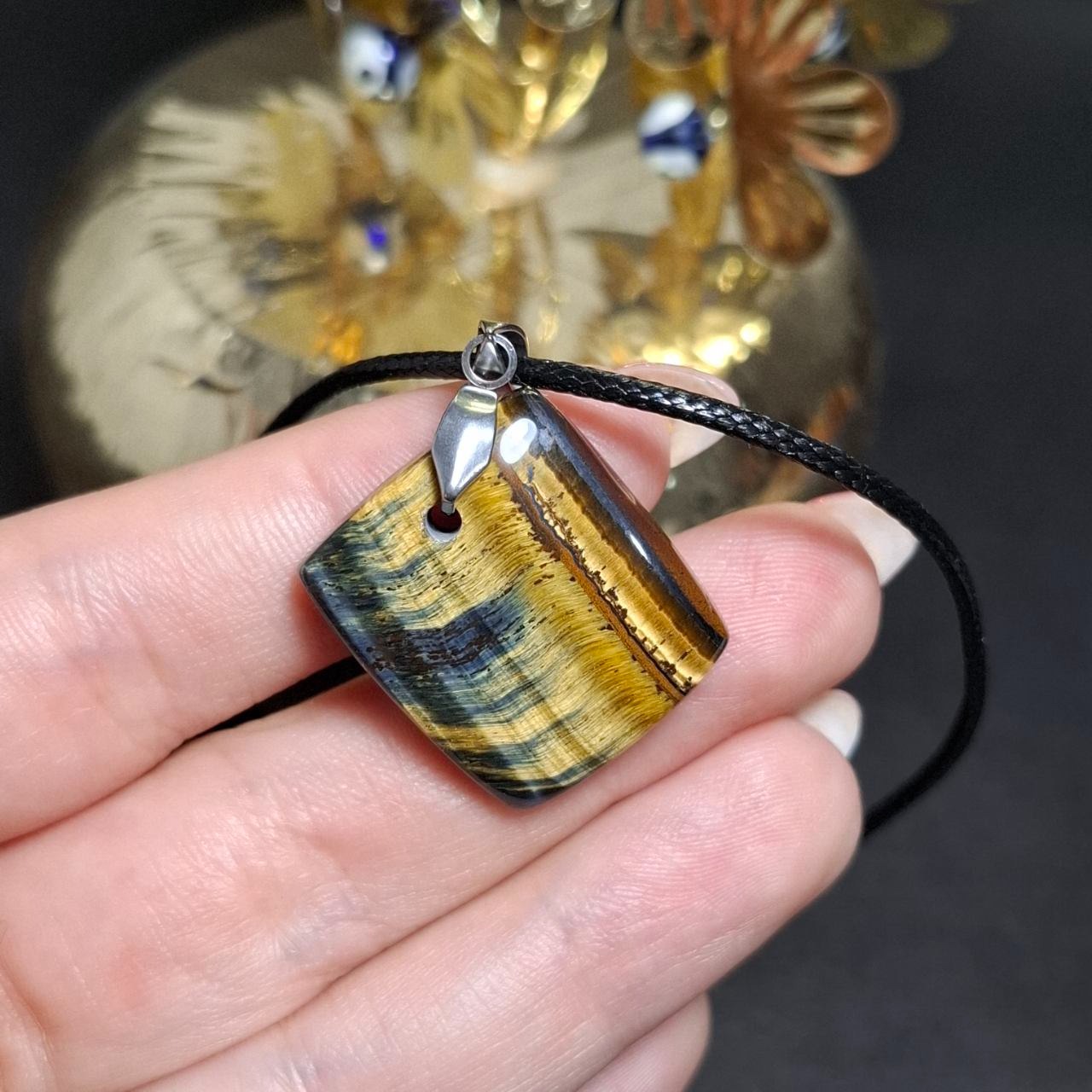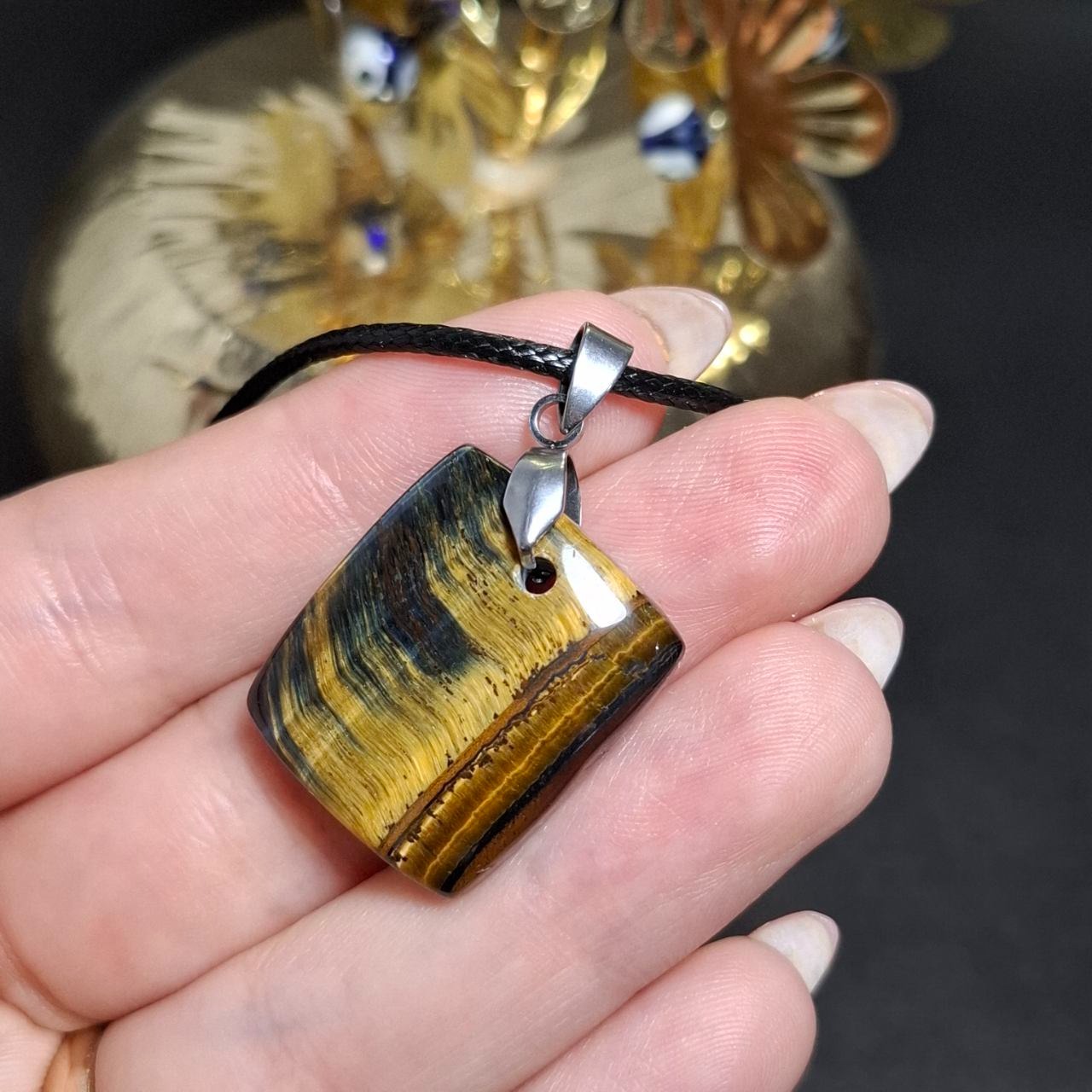 گردنبند آویز سنگ چشم ببرمعدنی کد 10449
