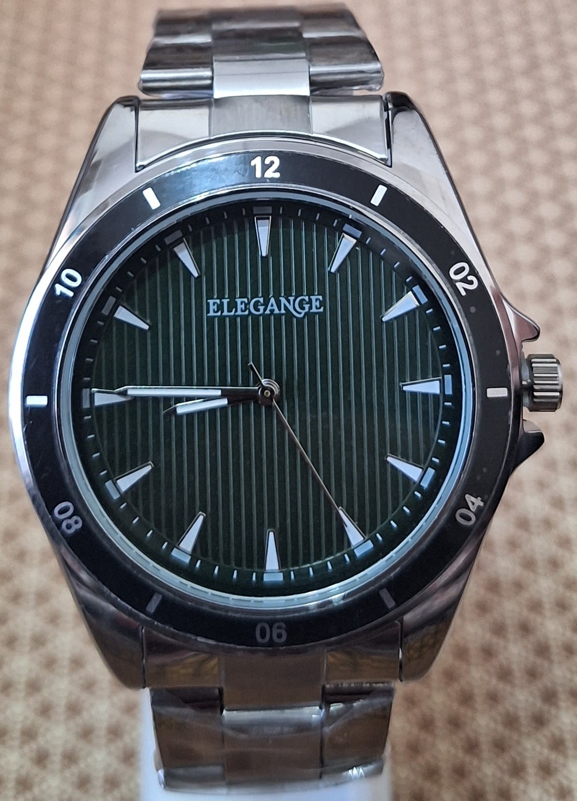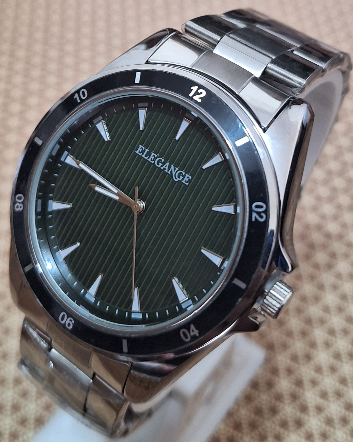 با ساعت ELEGANGE، هر لحظهتان رنگی از شکوه و دقت دارد. طراحی مدرن با صفحه سبز مخملی و جزئیات مینیمال، ترکیبی بینقص از استایل و عملکرد.
