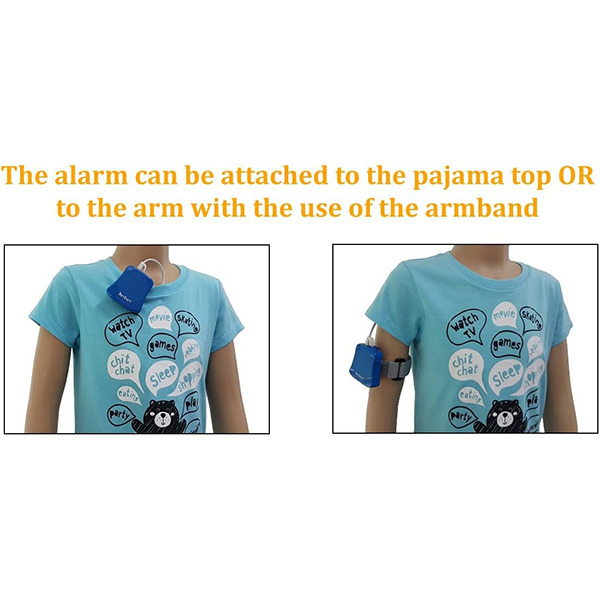 - لوازم جانبی با ارزش افزوده ارائه شده: هشدار شب ادراری DryEasy را میتوان به بالای لباس خواب یا به بازو وصل کرد.