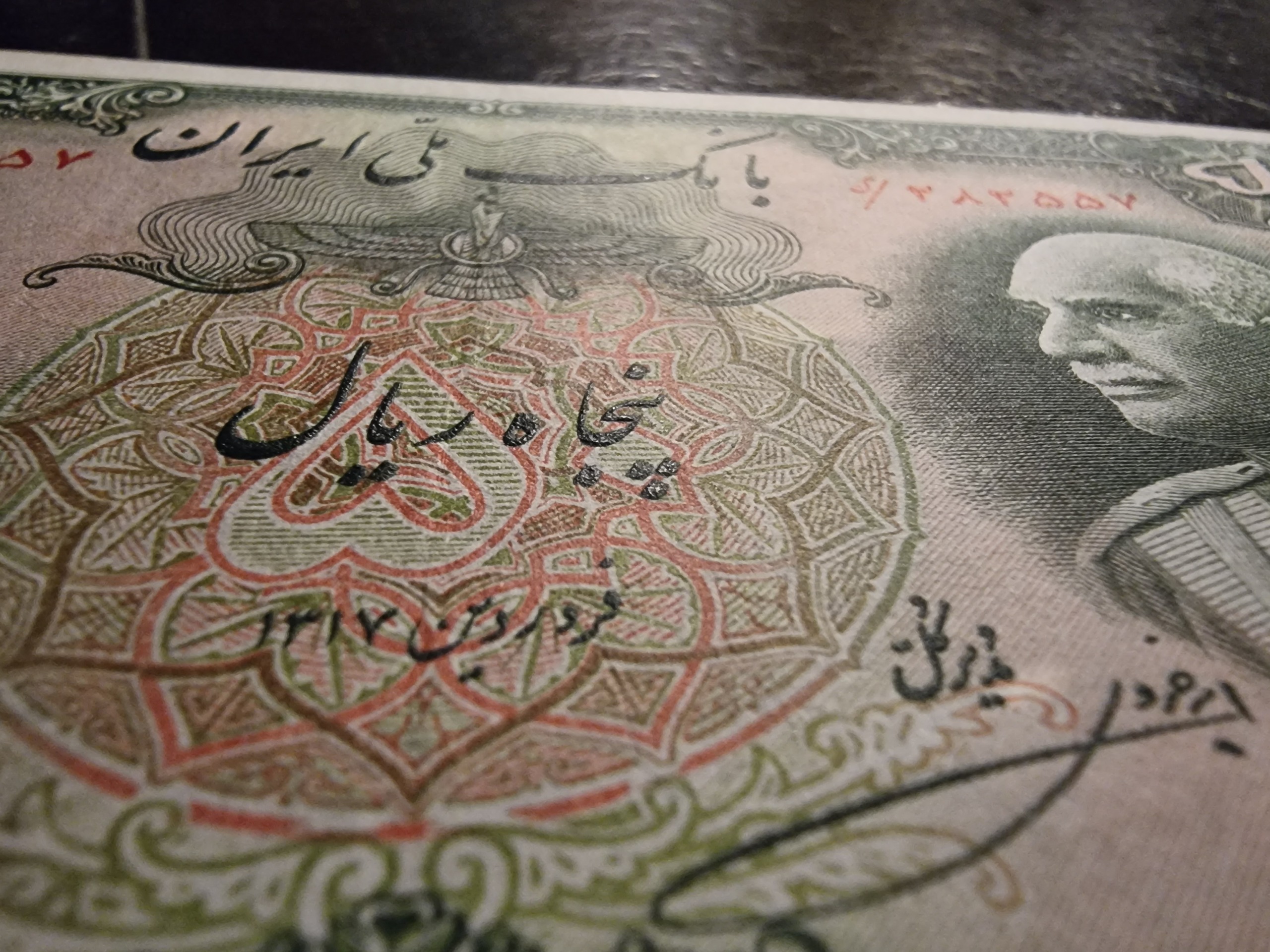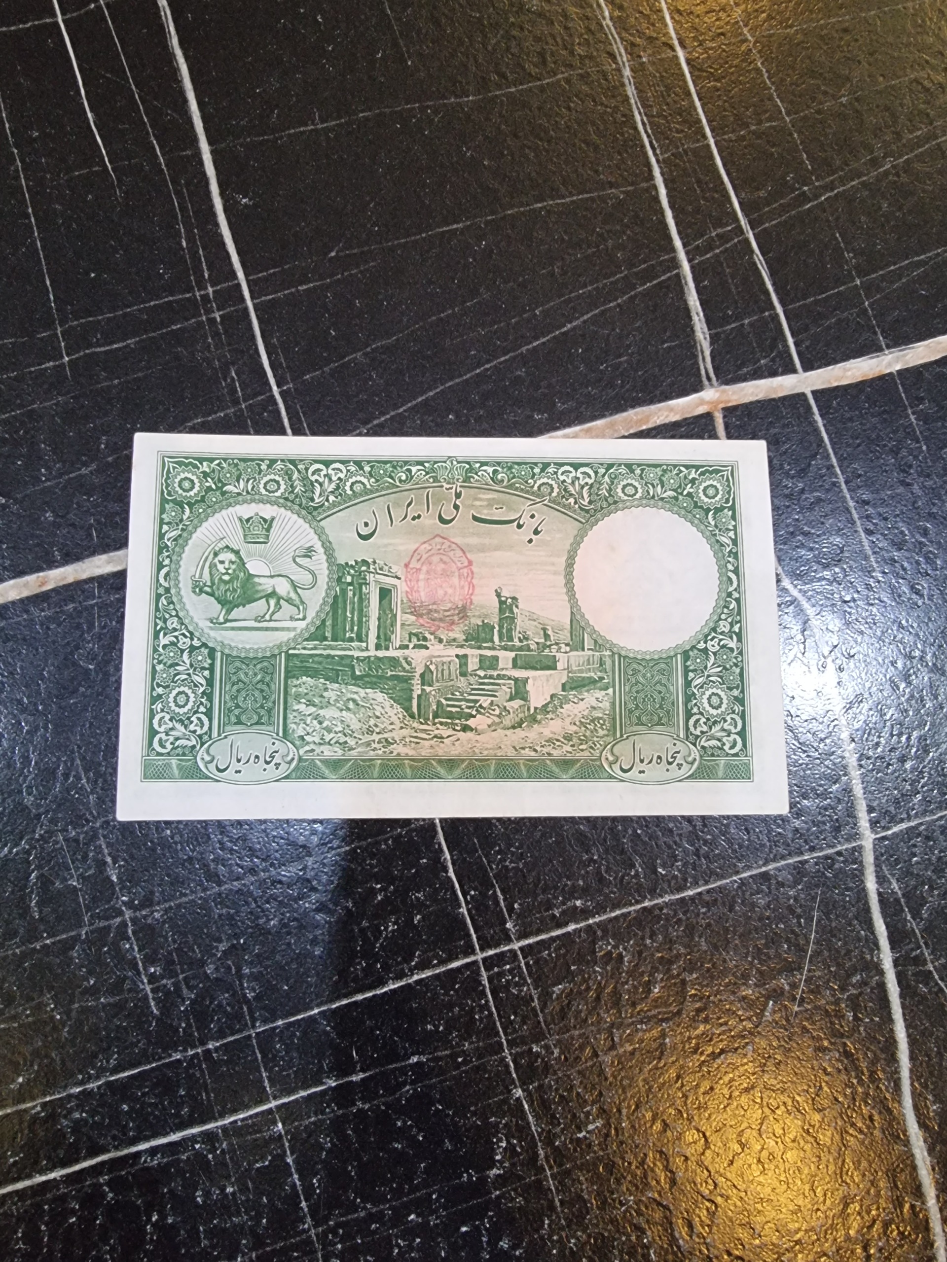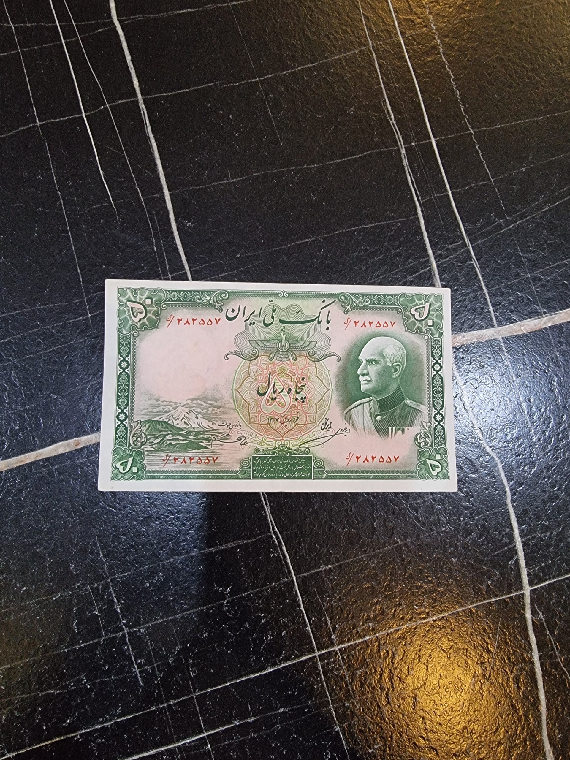 50 ریالی رضا شاه 1317 بکر بسیار با کیفیت توی عکس مشخص شده فقط یه تای وسط داره و یه پرس نرم