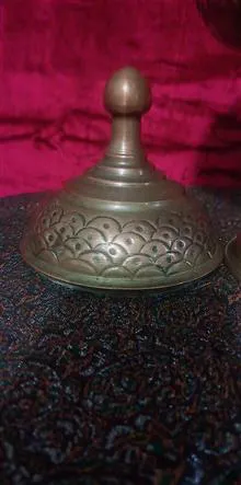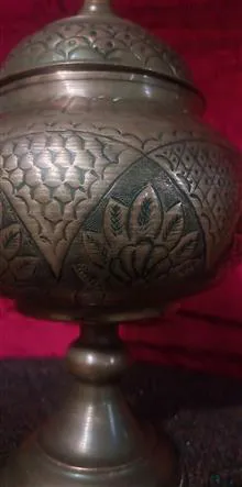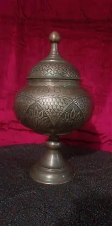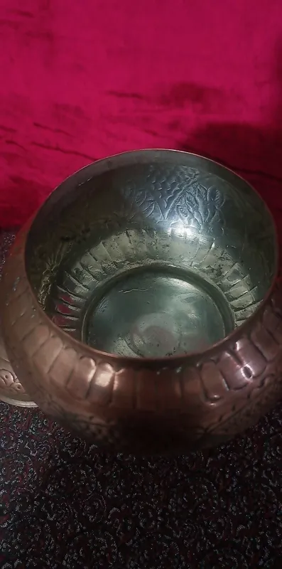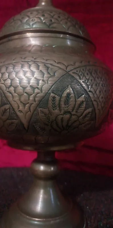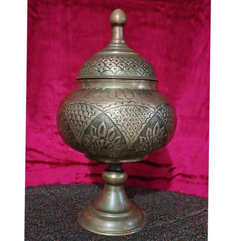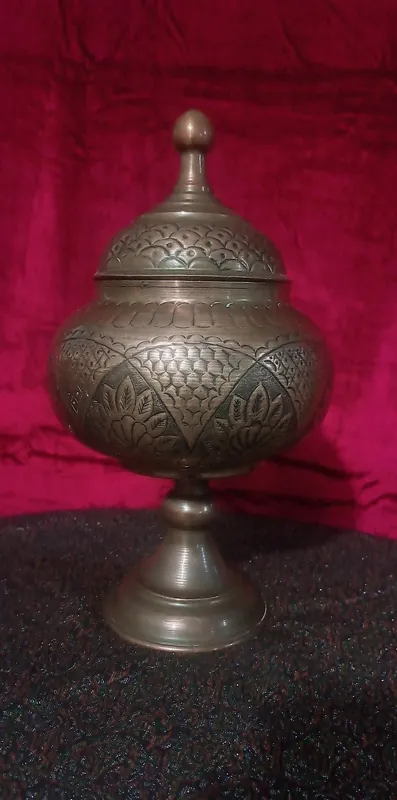یک ظرف گزخوری مسی قلمکاری شده ارتفاع 32 سانت