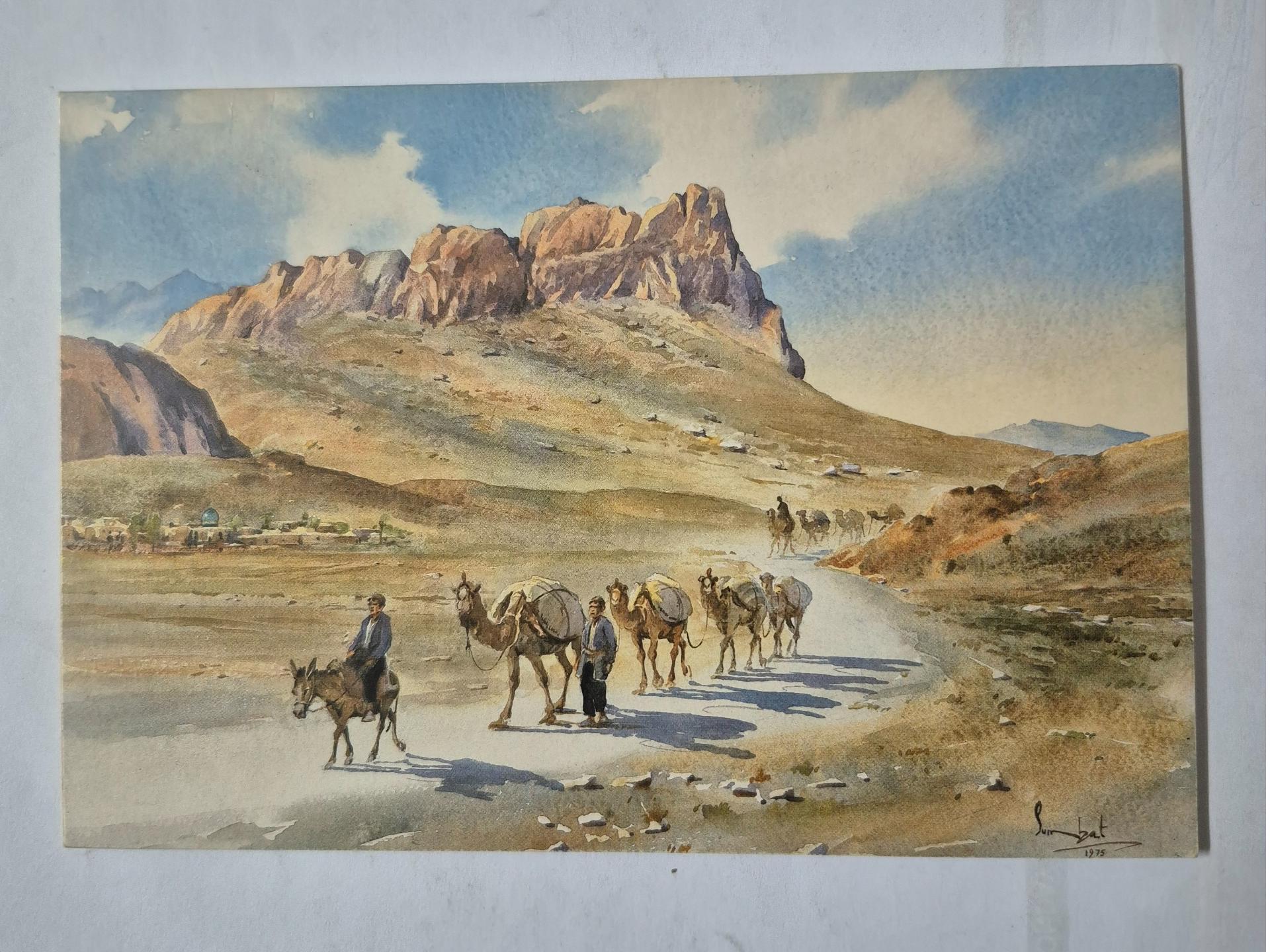 کارت پستال زیبای نقاشی کاروان شتر حومه اصفهان