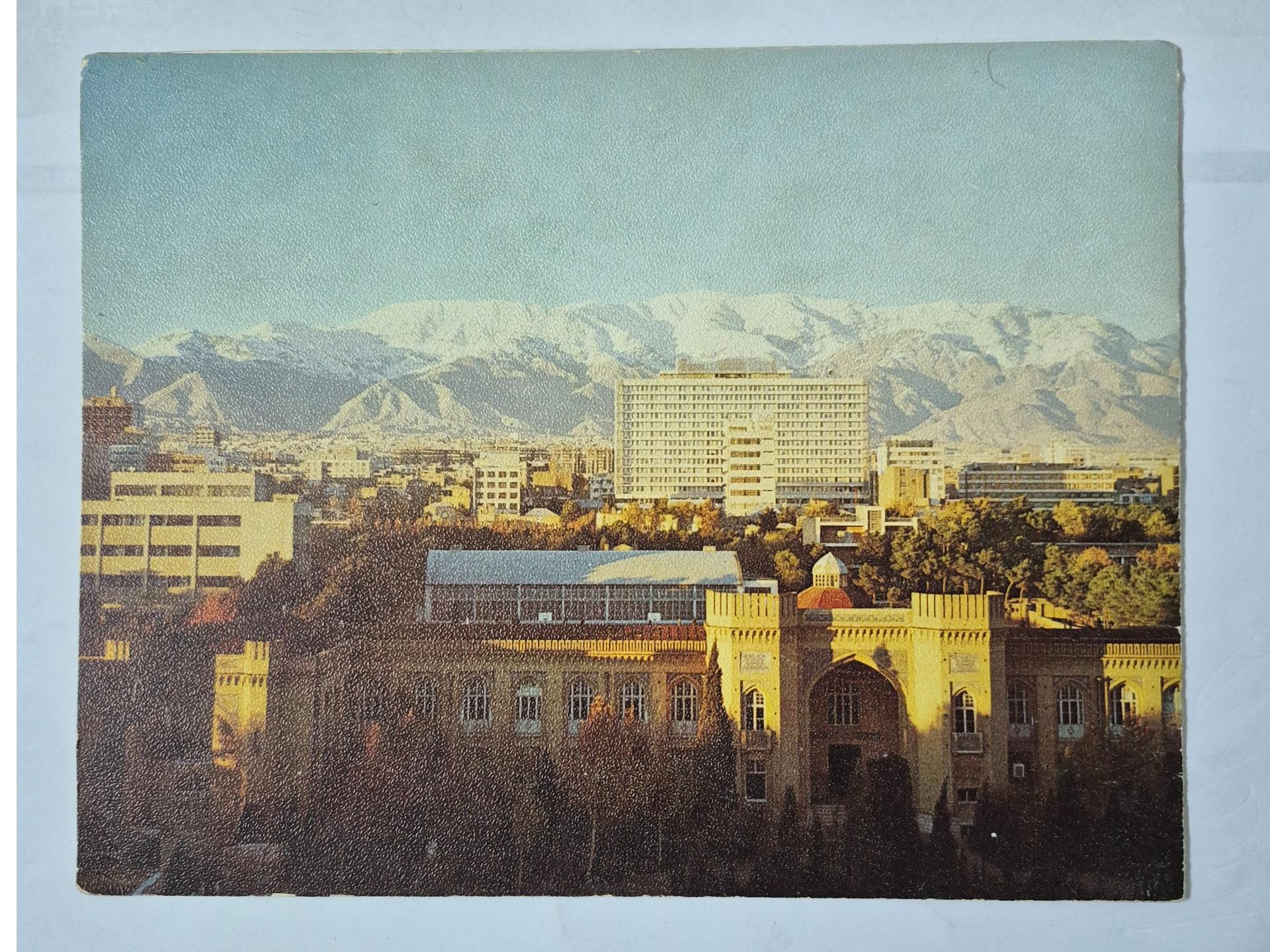 کارت پستال عمارت دانشگاه تهران و کوههای البرز
